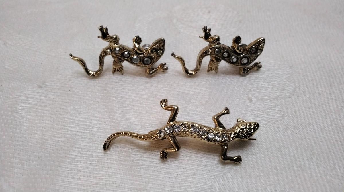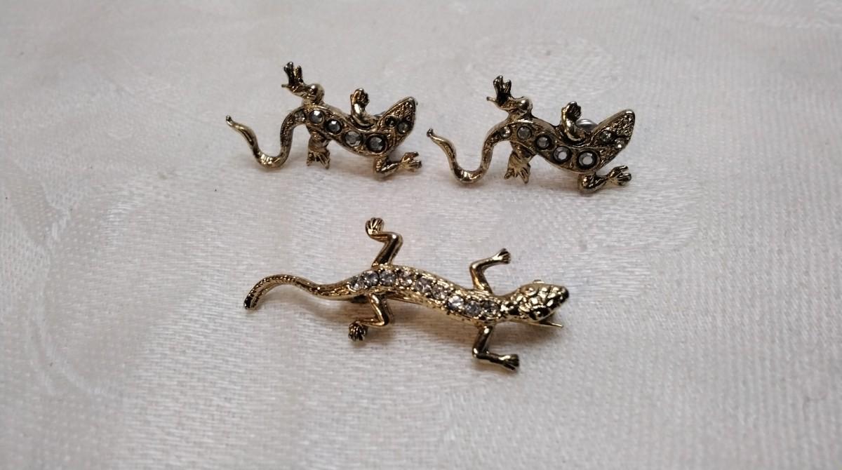 Gecko Earrings and Brooch