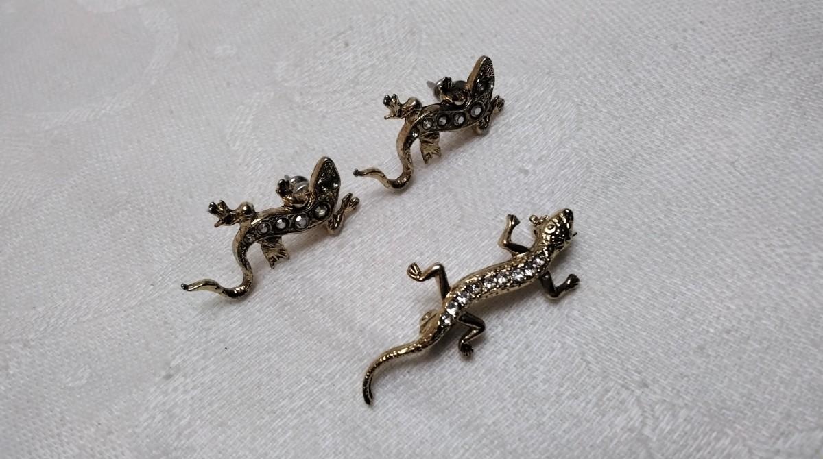 Gecko Earrings and brooch
