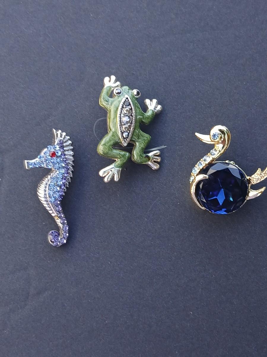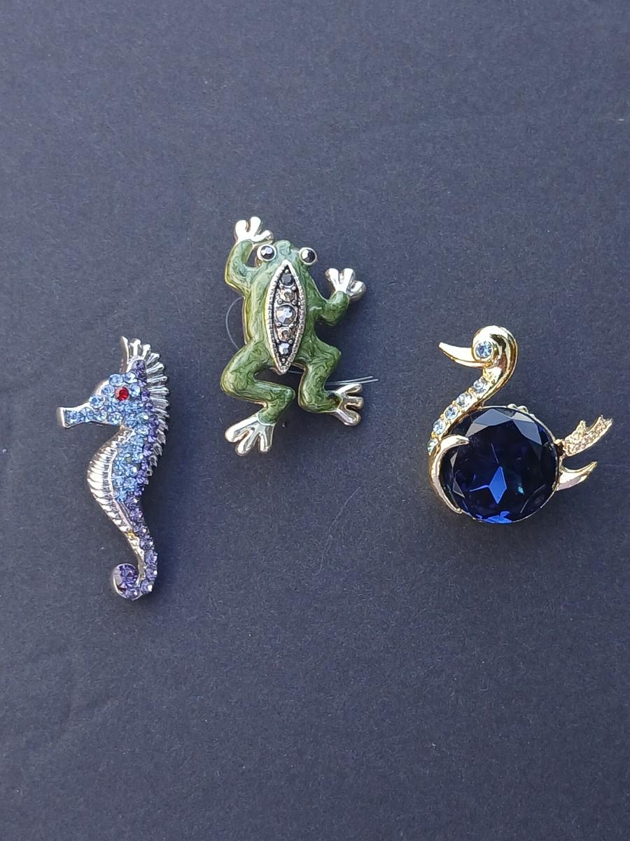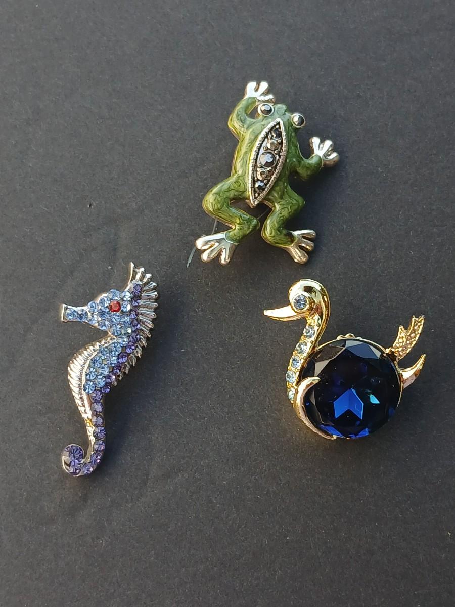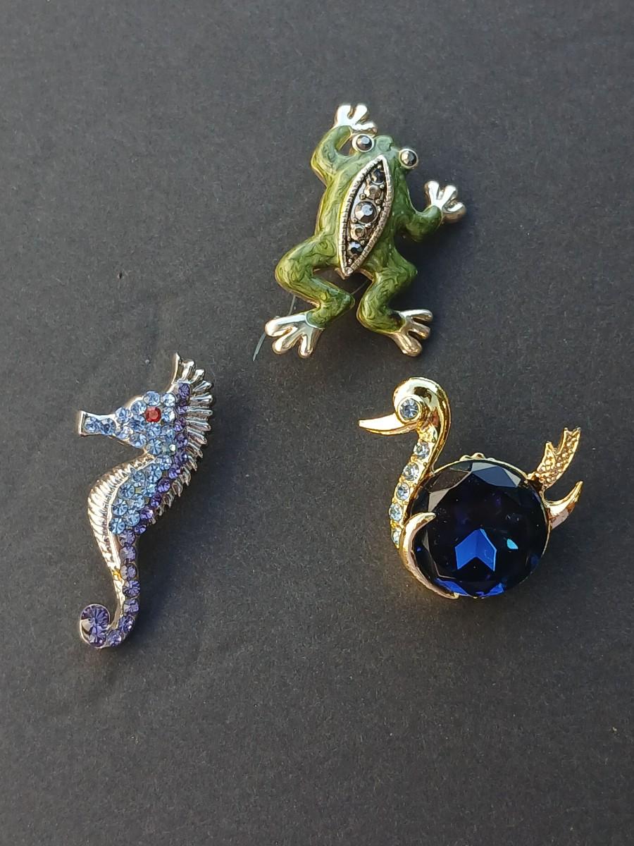 Rhinestone Brooch collection - Sea horse - Frog - and Bird