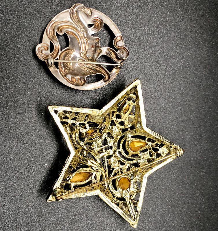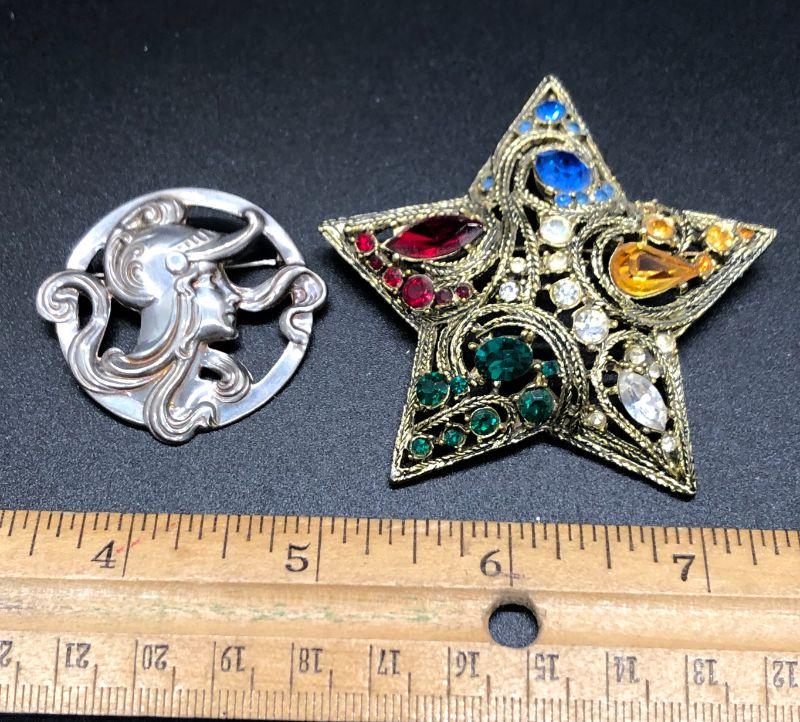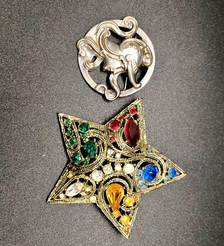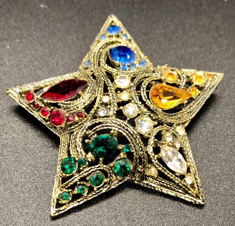 Brooch / Pin Lot, Vintage Jewelry, multicolored star and Conquestador