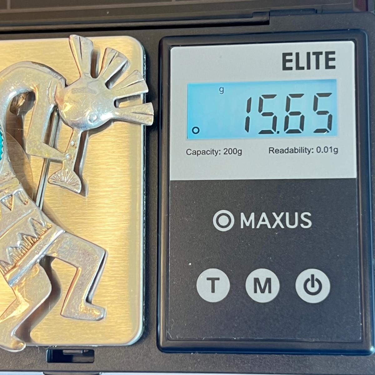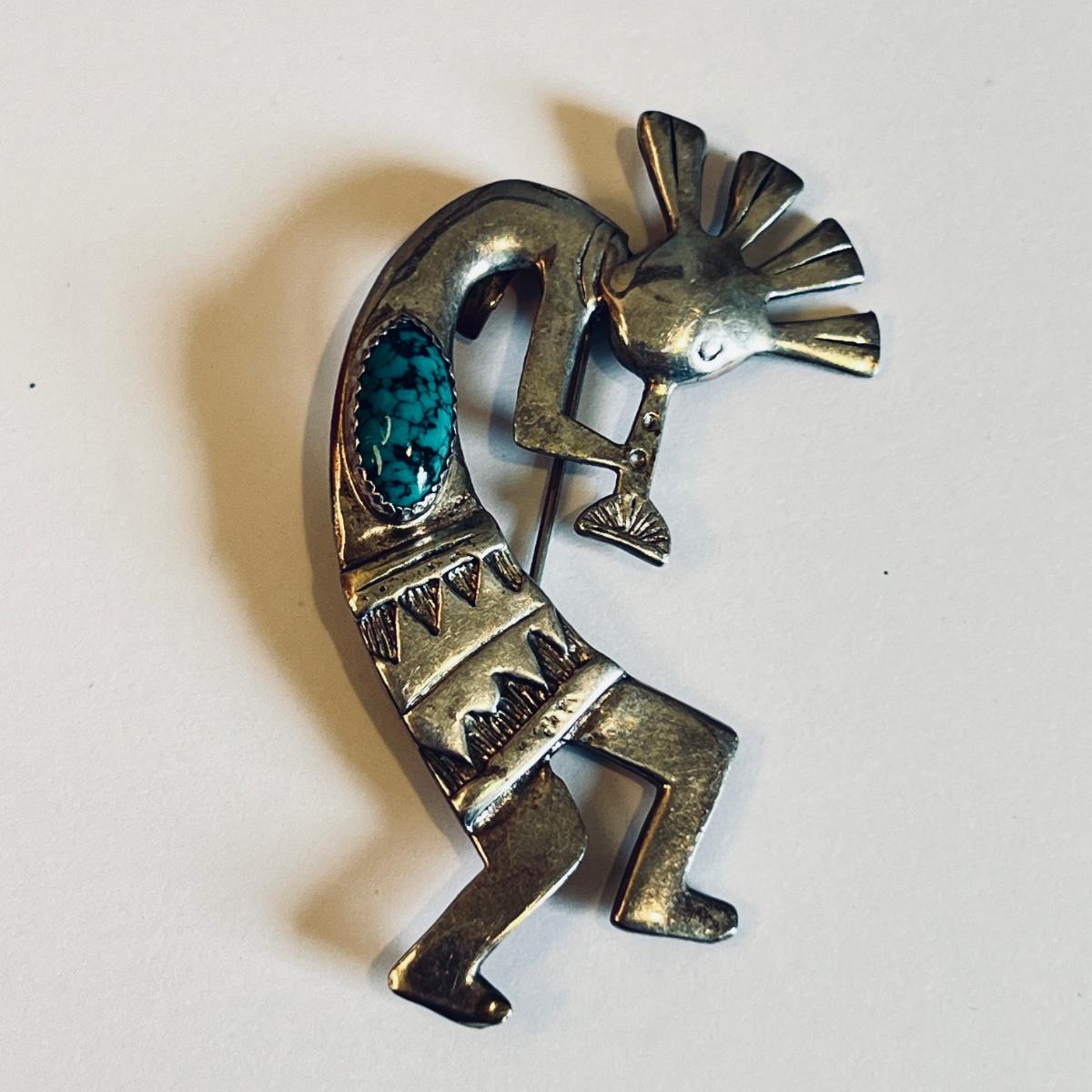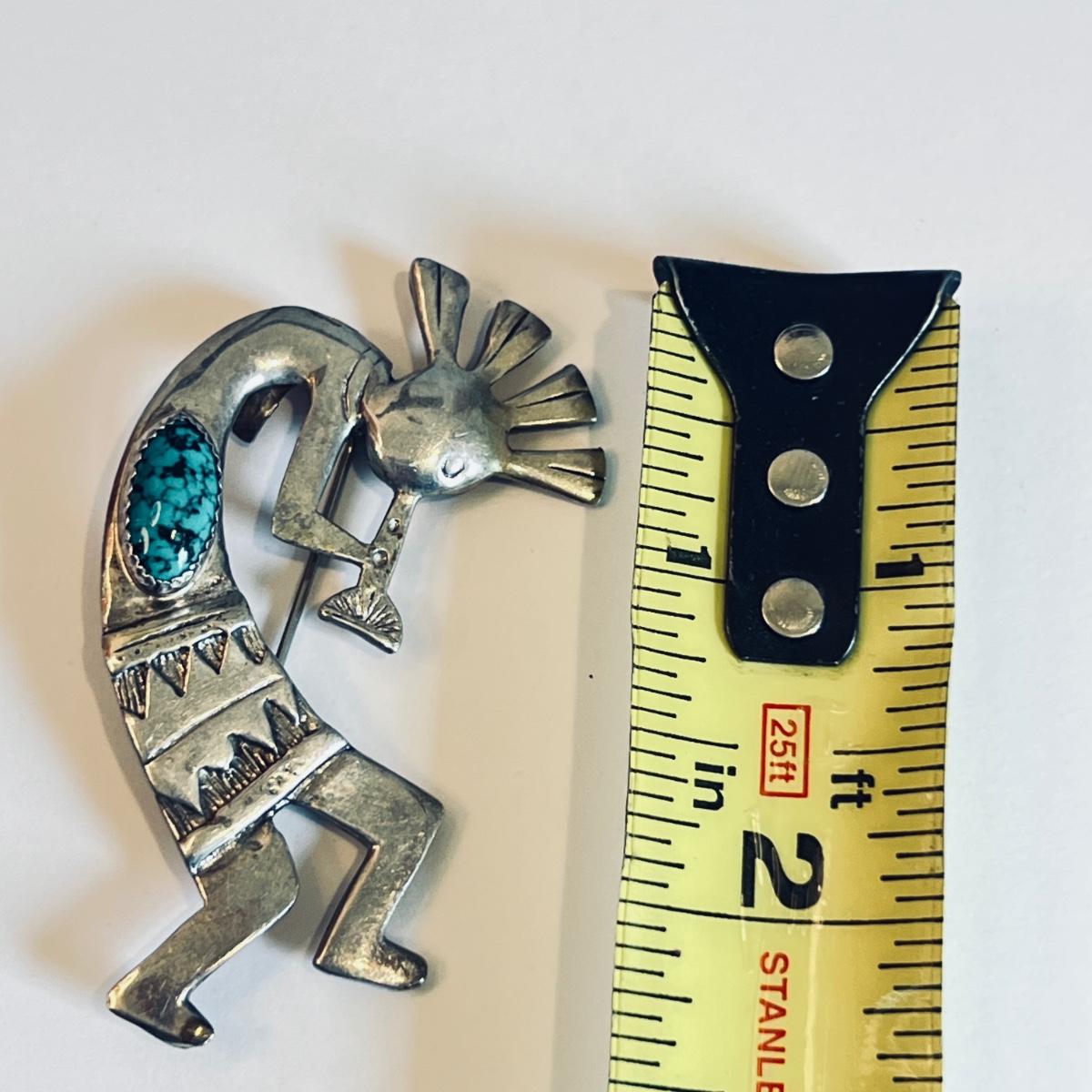Vintage Navajo Sterling Silver Blue Turquoise Kokopelli Brooch Pin