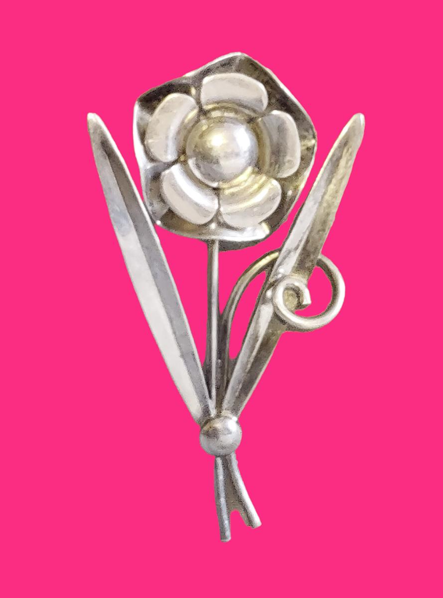3. Vintage Sterling Silver Stylized Flower - 3.5"H x 1.75"W (marked STERLING)