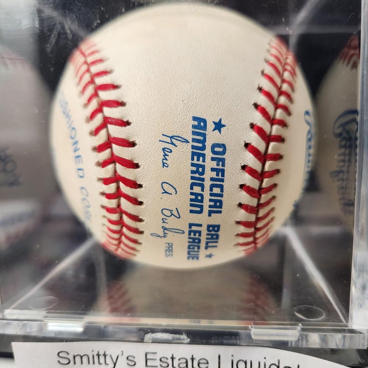 This is just one of many signed baseballs in this fantastic estate. The items in this collection were acquired over many years, most balls/bats/cards/ect signed right in front of the owner. Unless noted in the description. the item has no Certificate of Authenticity since, again - most were acquired at shows, games and many years attending spring training by this lifelong fan. Buying as is, as found in the estate and, as always, we make no guarantees and all sales are final. NEVER a Buyer's Premium or Credit Card Fee added. Nationwide shipping is available on this lot - all packages will be insured at purchasers cost to amount bid. Please note = We reserve the right to request Certified Funds to any/all invoice totals in excess of $1000. If you have any questions regarding these terms & conditions, please contact us before the final day of the auction as final hours of bidding can be very busy. Payment is due within 48 hours of invoicing. Good luck bidding!