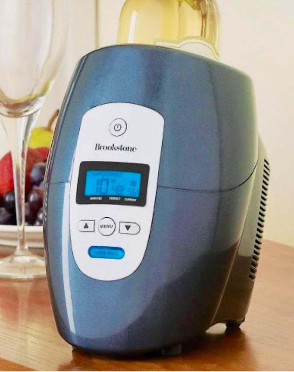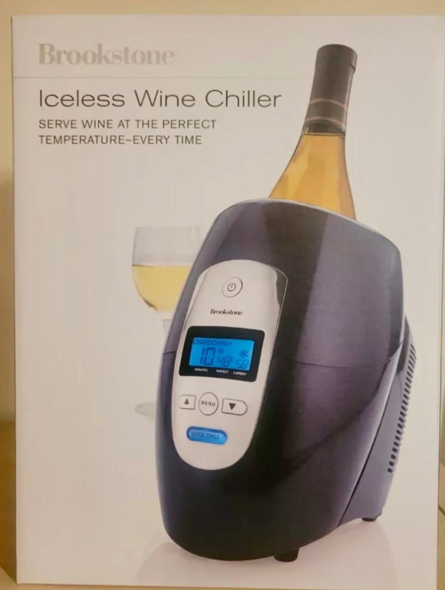 Brookstone iceless electric wine chiller. Tested, works as expected.