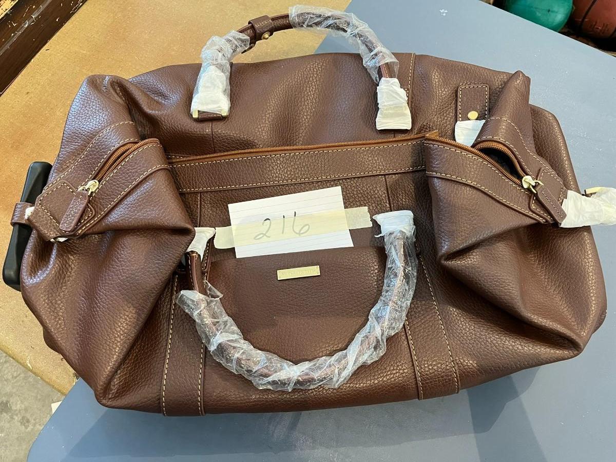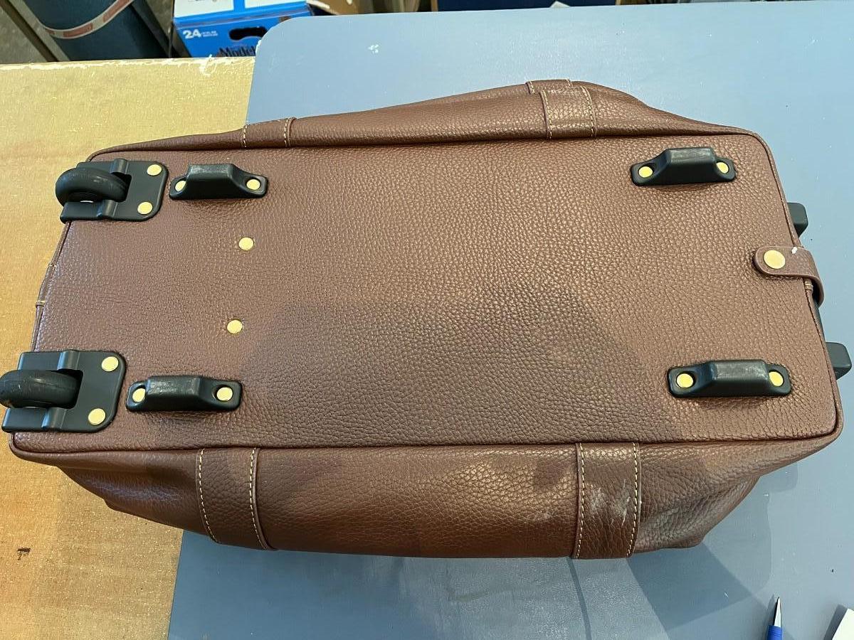Brooks Brothers Brown Leather Wheel Duffle Weekender Travel Bag