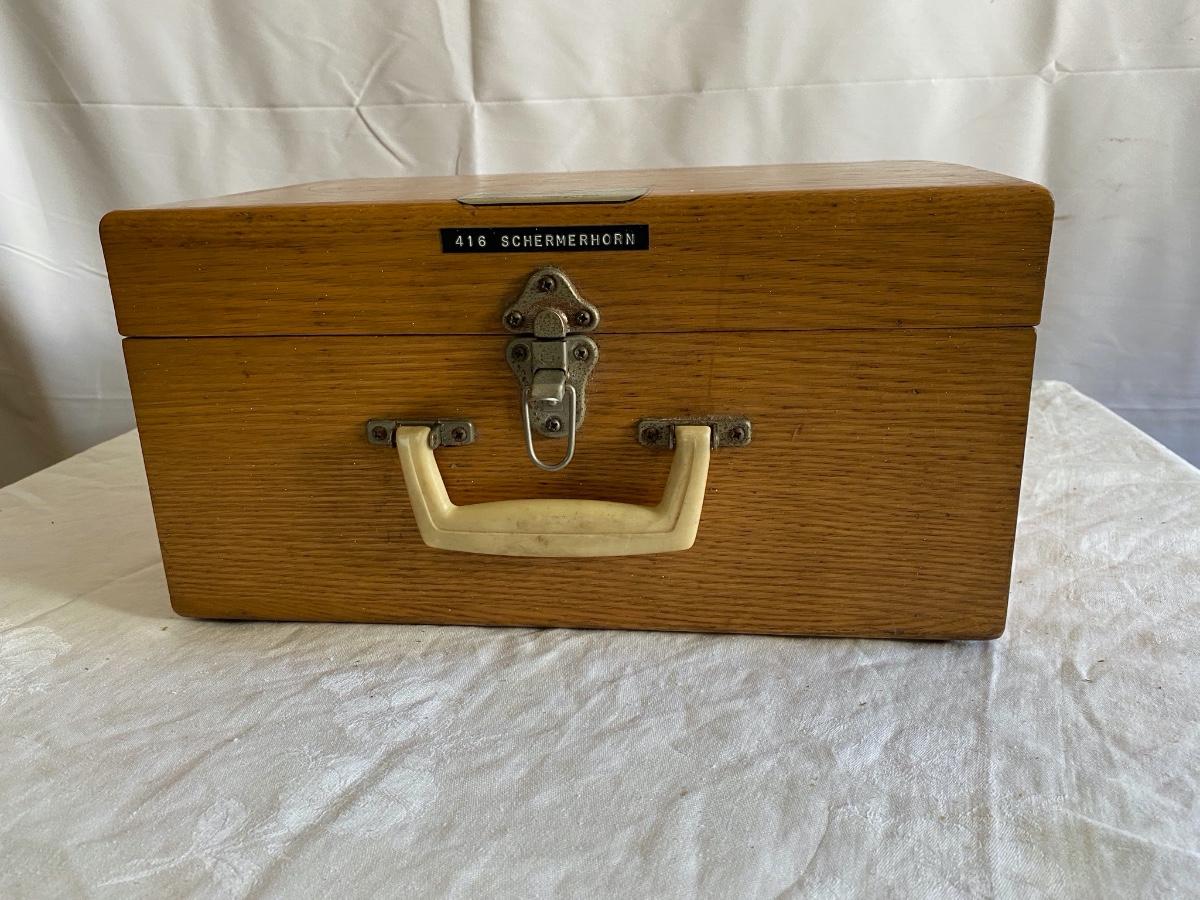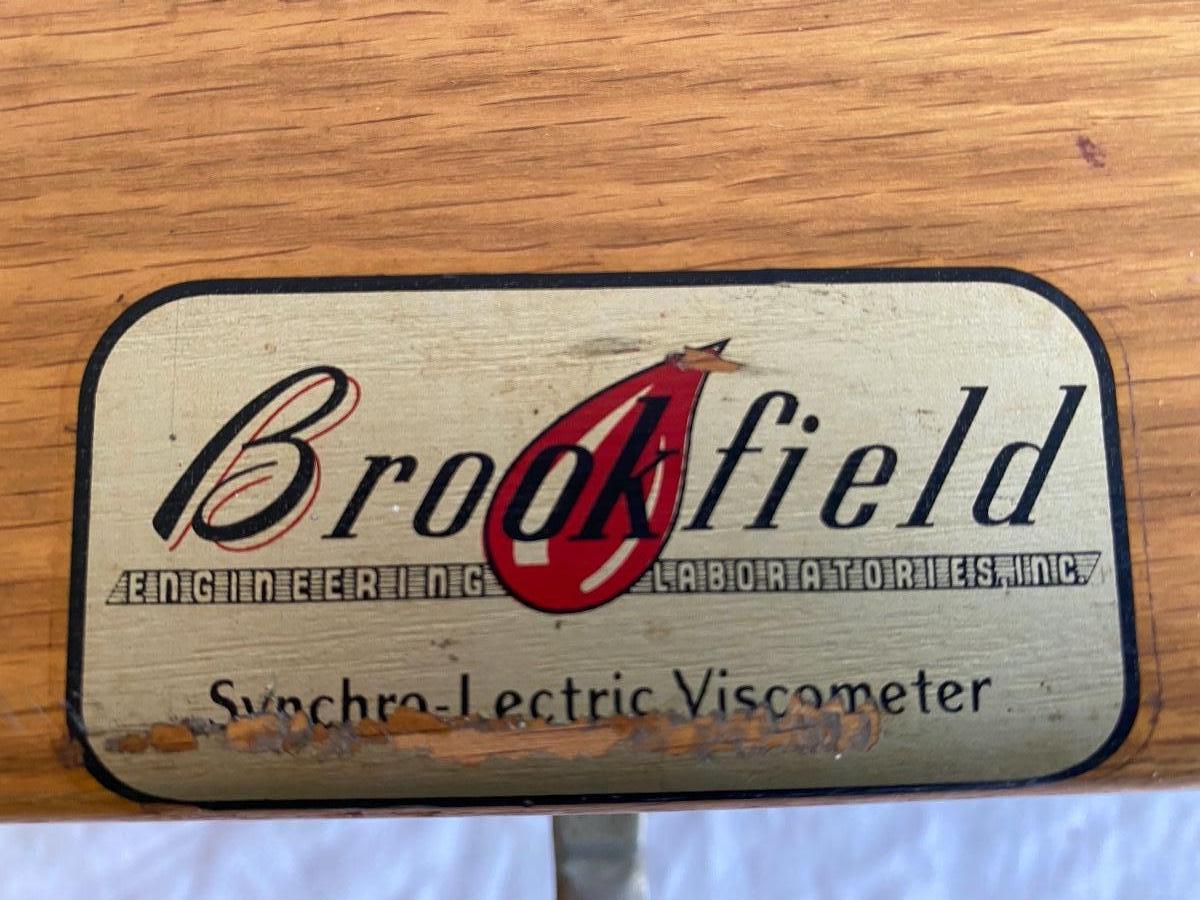 Vintage Brookfield Engineering Laboratories dial reading synchro-lectric viscometer ret volt 110 in original wood box. Belonged to Prof. Paul Francis Kerr. Not tested