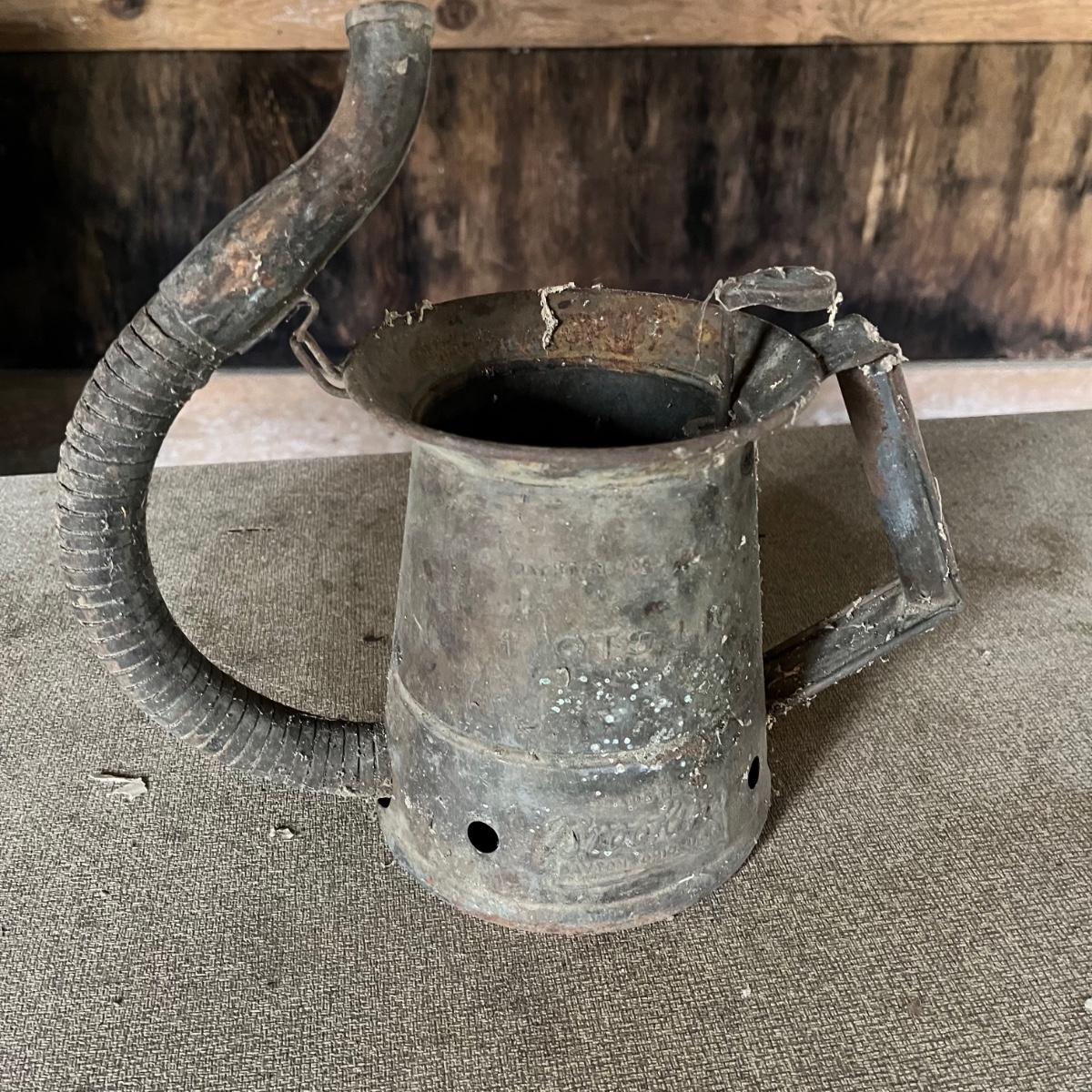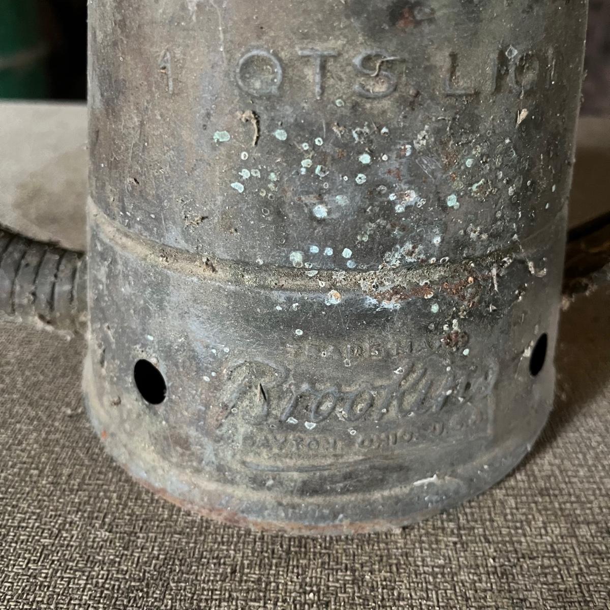 Lot includes a Brooking Oil Can and a small oil can. Larger can measures 5.25”D x 7” tall.