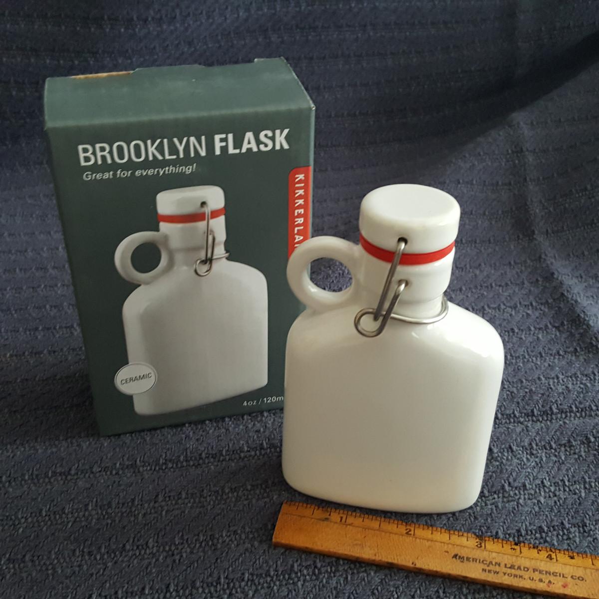 This auction lot is for a new-in-box Brooklyn Ceramic Flask. The cute 4oz. container can be used for so many purposes. Handsomely designed and expertly manufactured in the Netherlands. See photos for measurement.