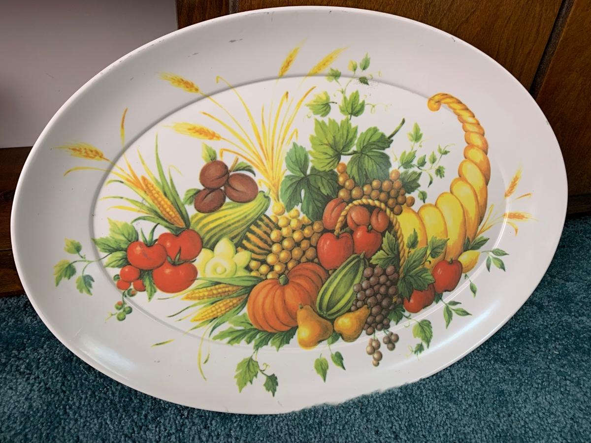 Brookpark Vintage Plastic Cornucopia Thanksgiving Turkey Platter