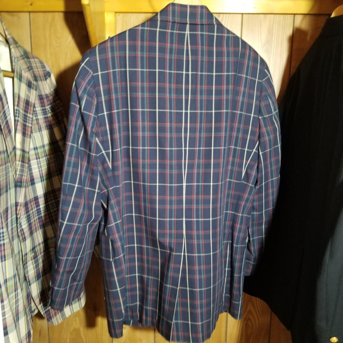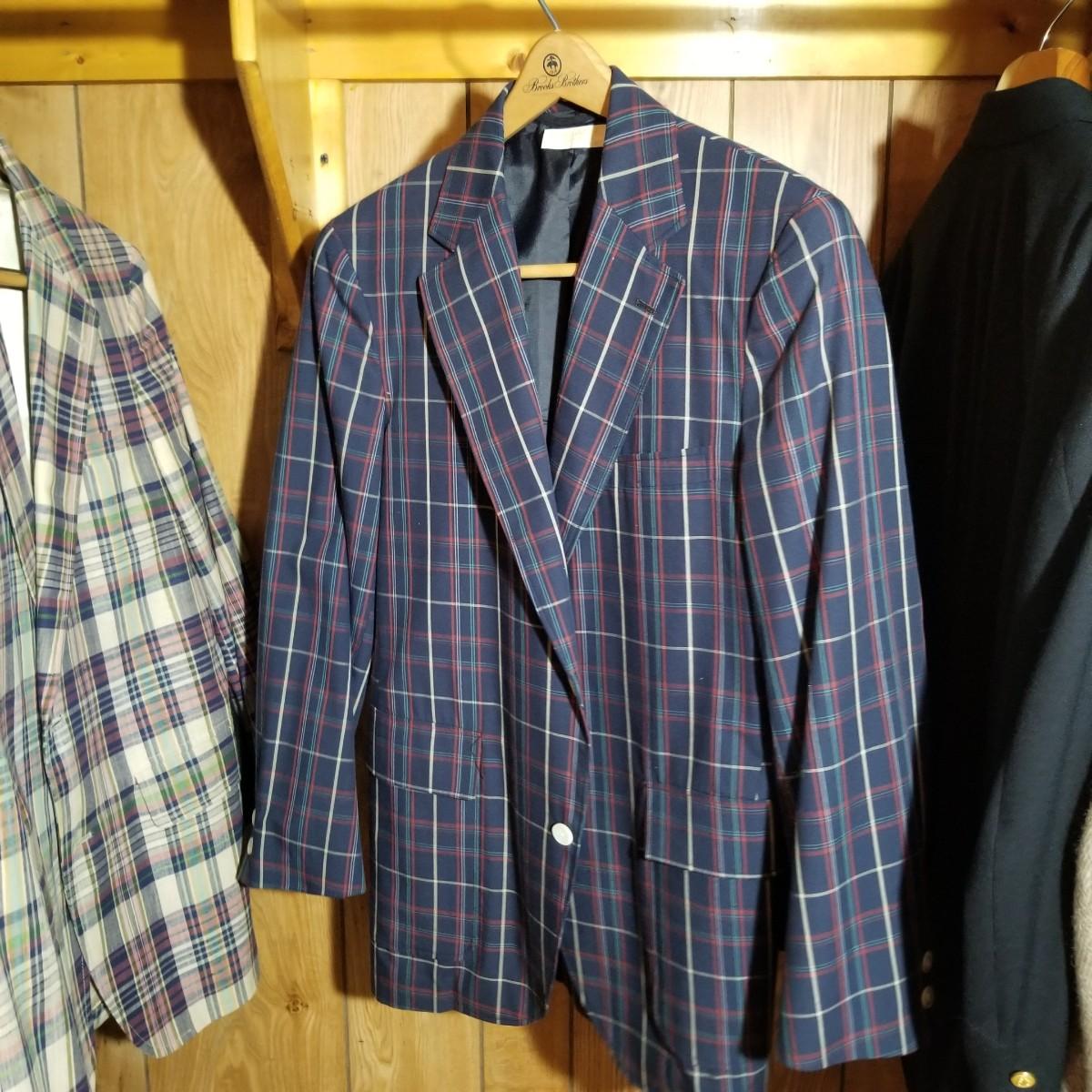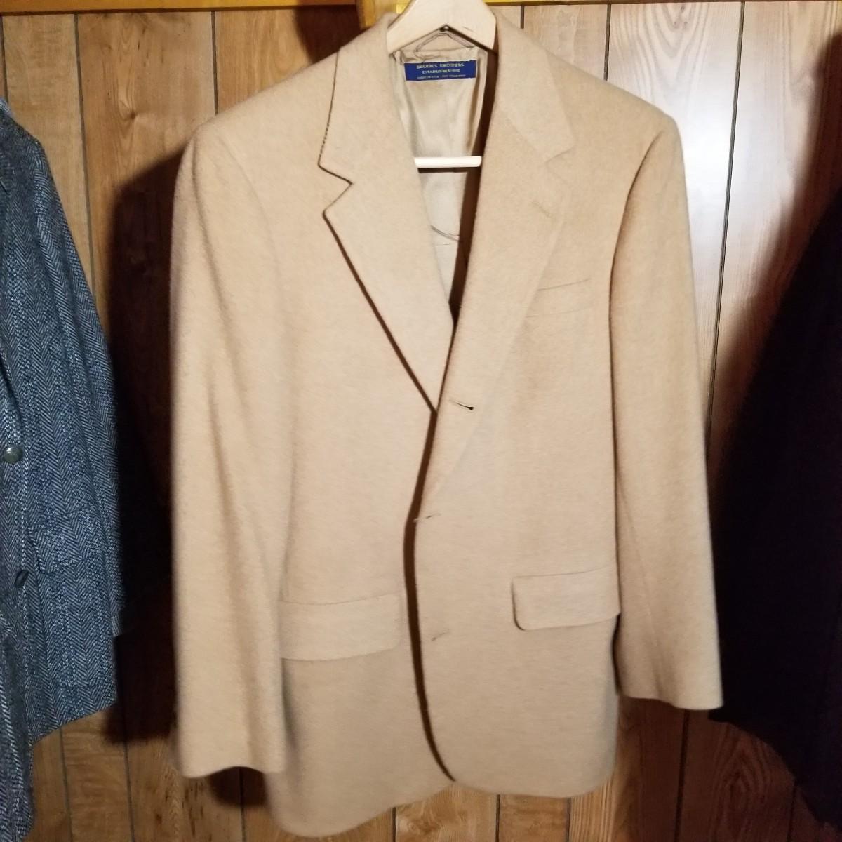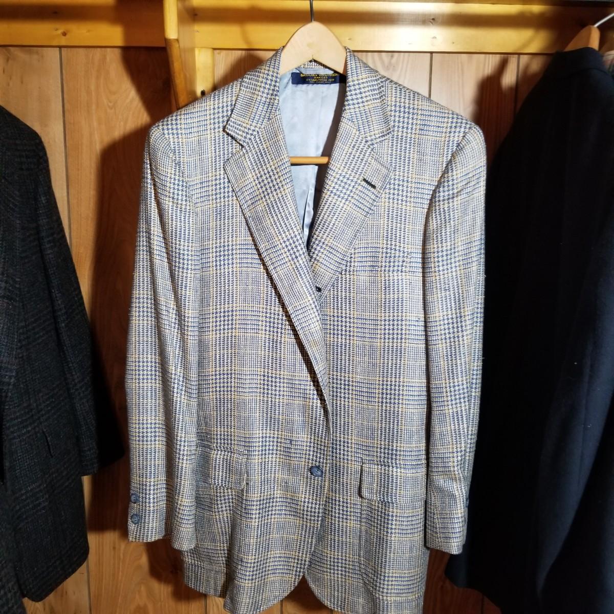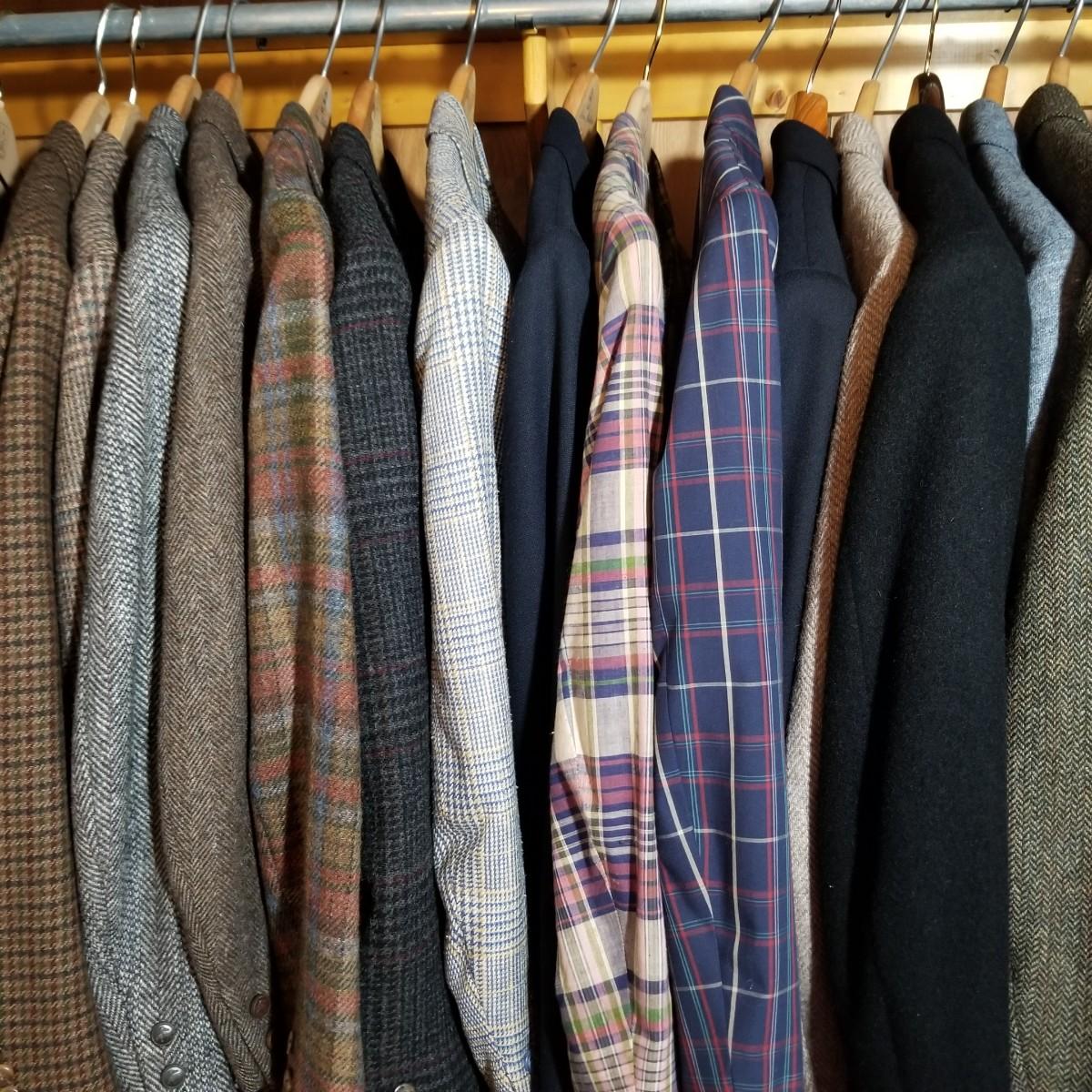 Twenty-one jackets and coats, all Brooks Brothers except for one Jos. A Banks item. Wool, wool/polyester blends, mixture of tweeds, solids and more. Sizes from thirty-six to thirty-eight regular. All items in good condition, on hangers. Hangers are included with this lot. Local pickup only.