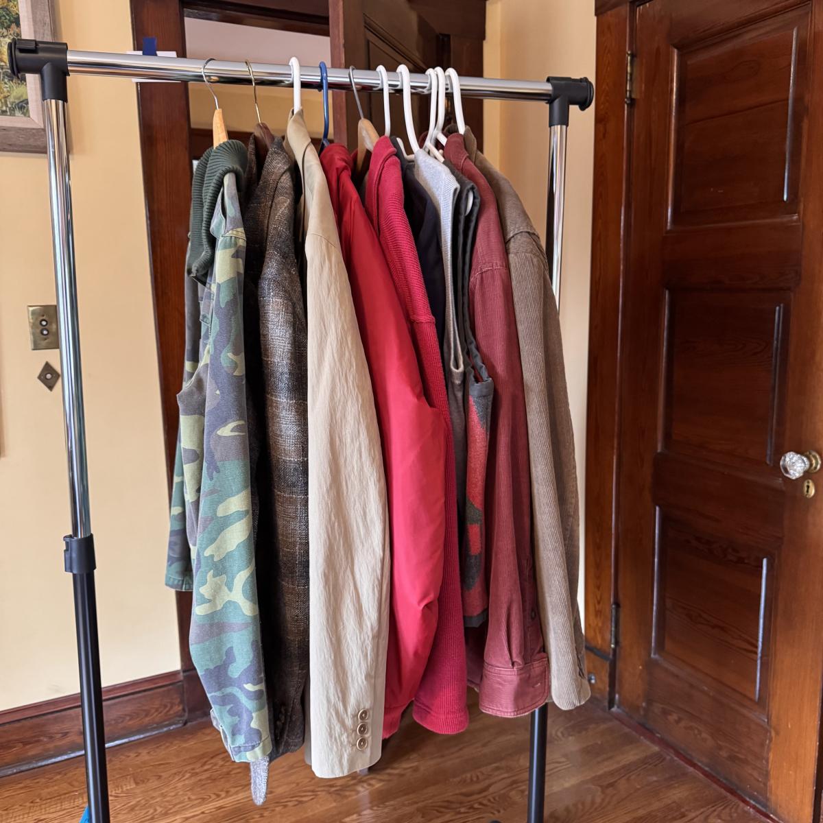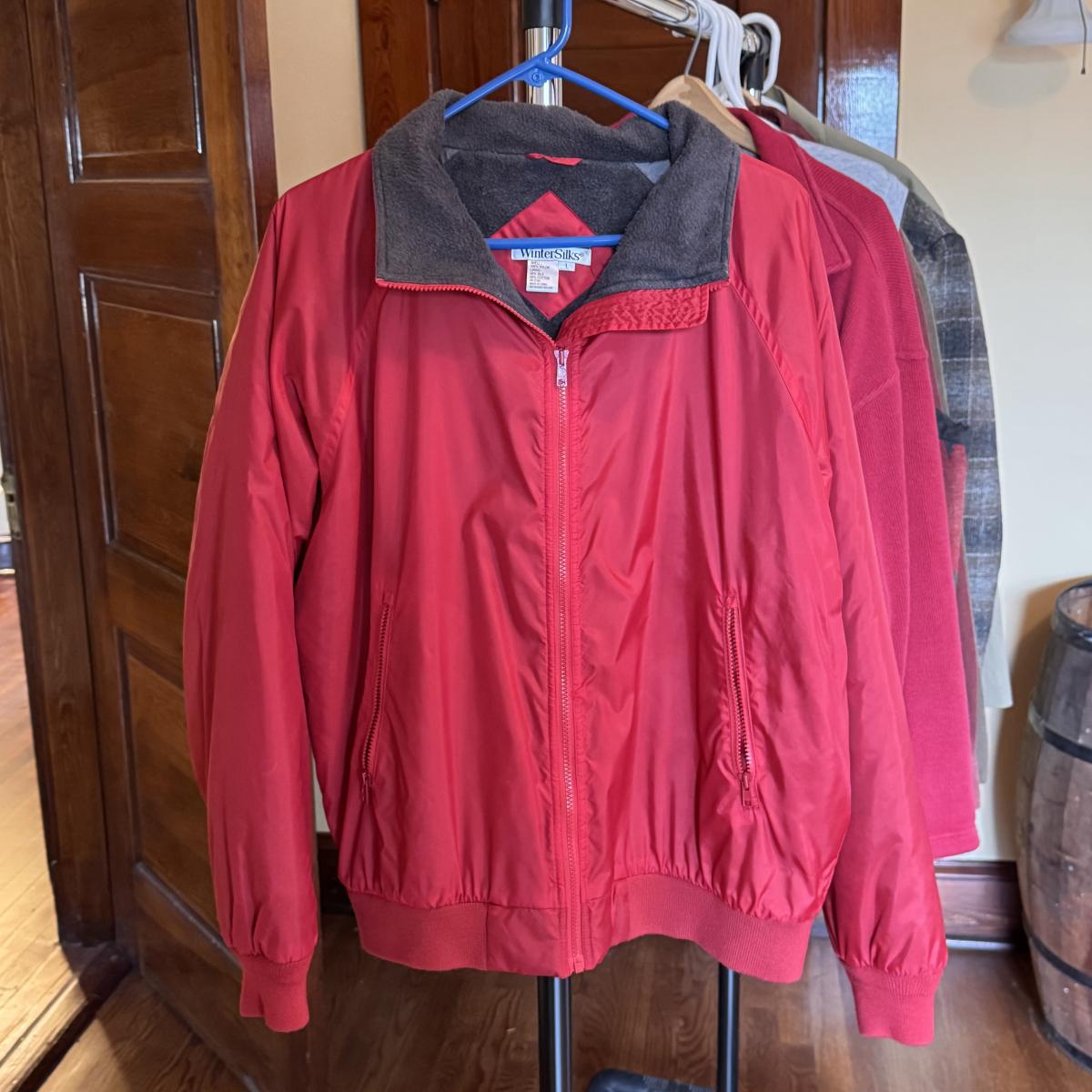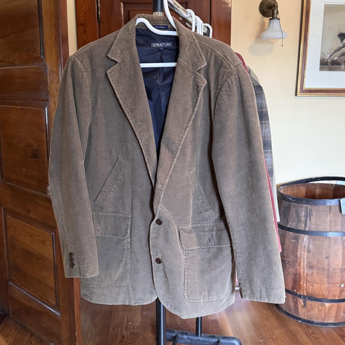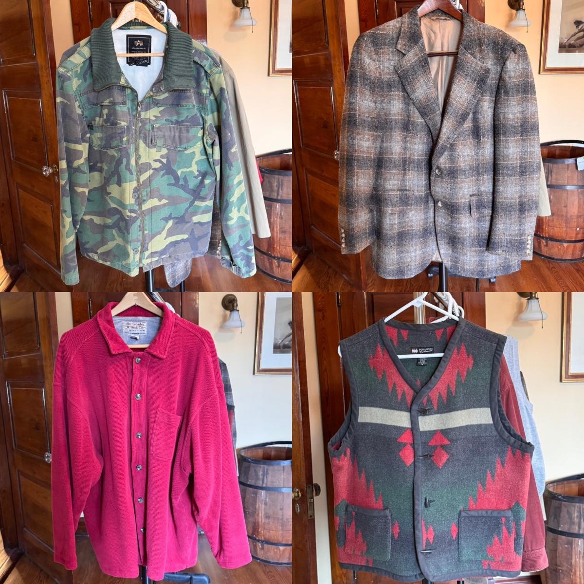 This lot includes eight men’s coats and two vests. All items are in a size large, except for two that are a size medium. The DKNY jacket had a few stains on it - see pictures included. You’ll find the following brands: Banana Republic, Brooks Brothers, DKNY, Structure, Woolrich, Abercrombie & Fitch Co., Alpha Industries, Delton, and WinterSilks. Shipping available.
