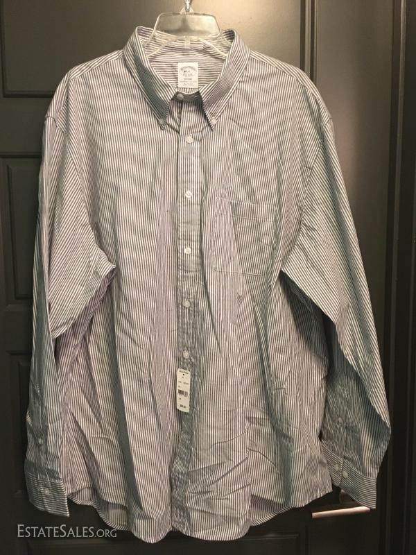 Brand new with tags men's Brooks Brothers dress polo shirt. White and blue striped. Size xxl 100% cotton. Smoke and pet free home.