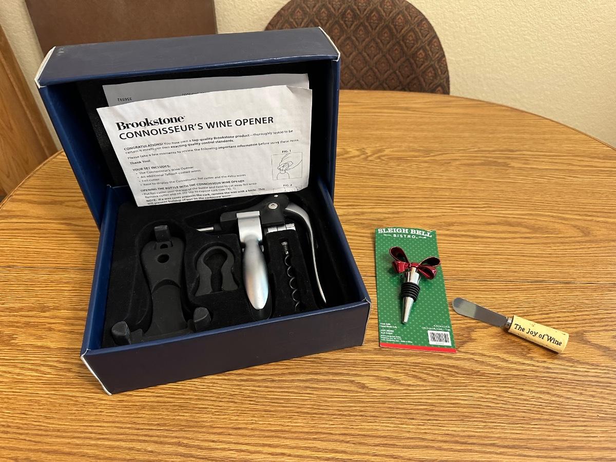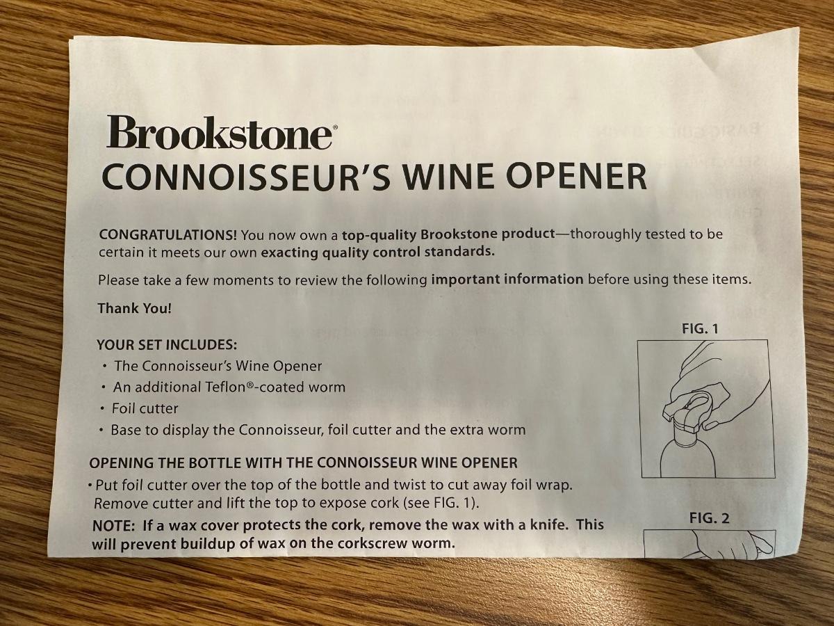 BROOKSTONE CONNOISSEUR'S WINE OPENER & BOTTLE STOPPER