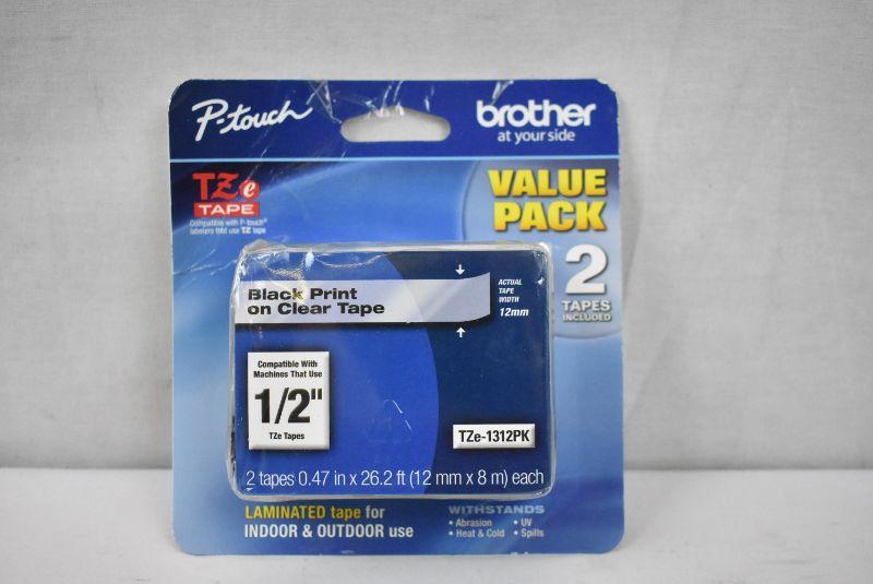 Brother Genuine P-touch TZE-1312PK Tape, 1/2" (047") Standard Laminated P-touch Tape, Black on Clear, 262 Feet (8M) - New