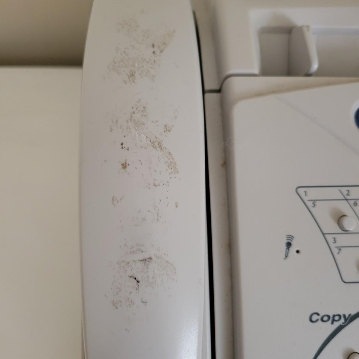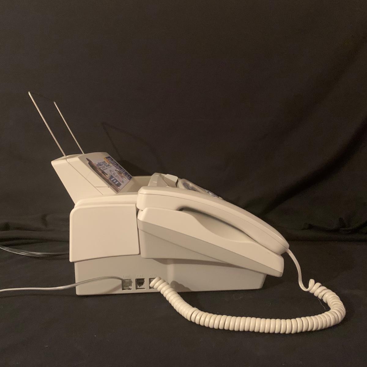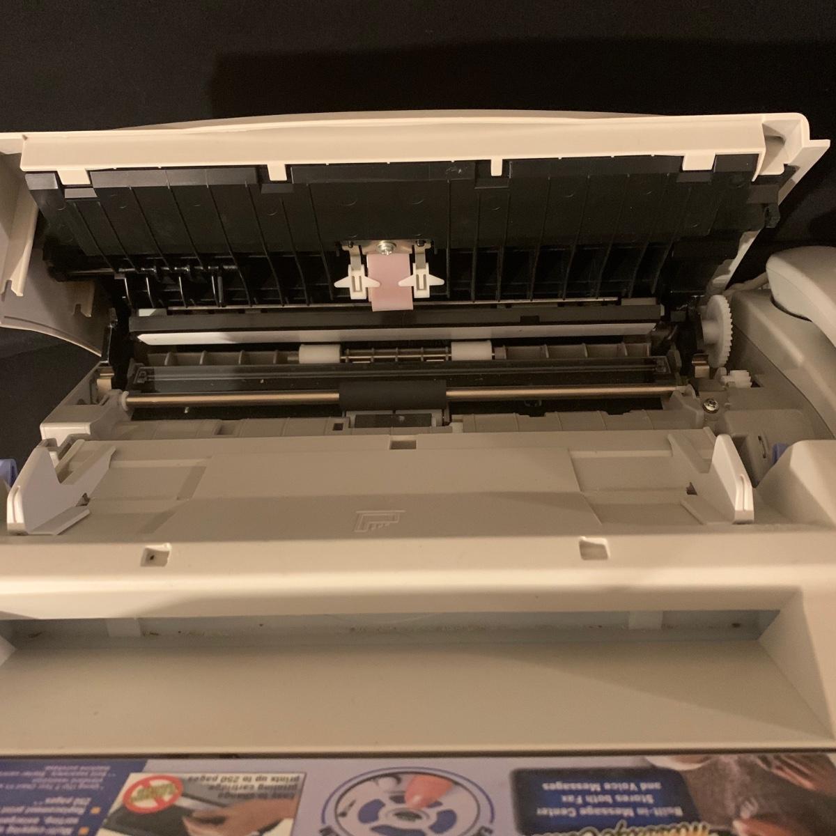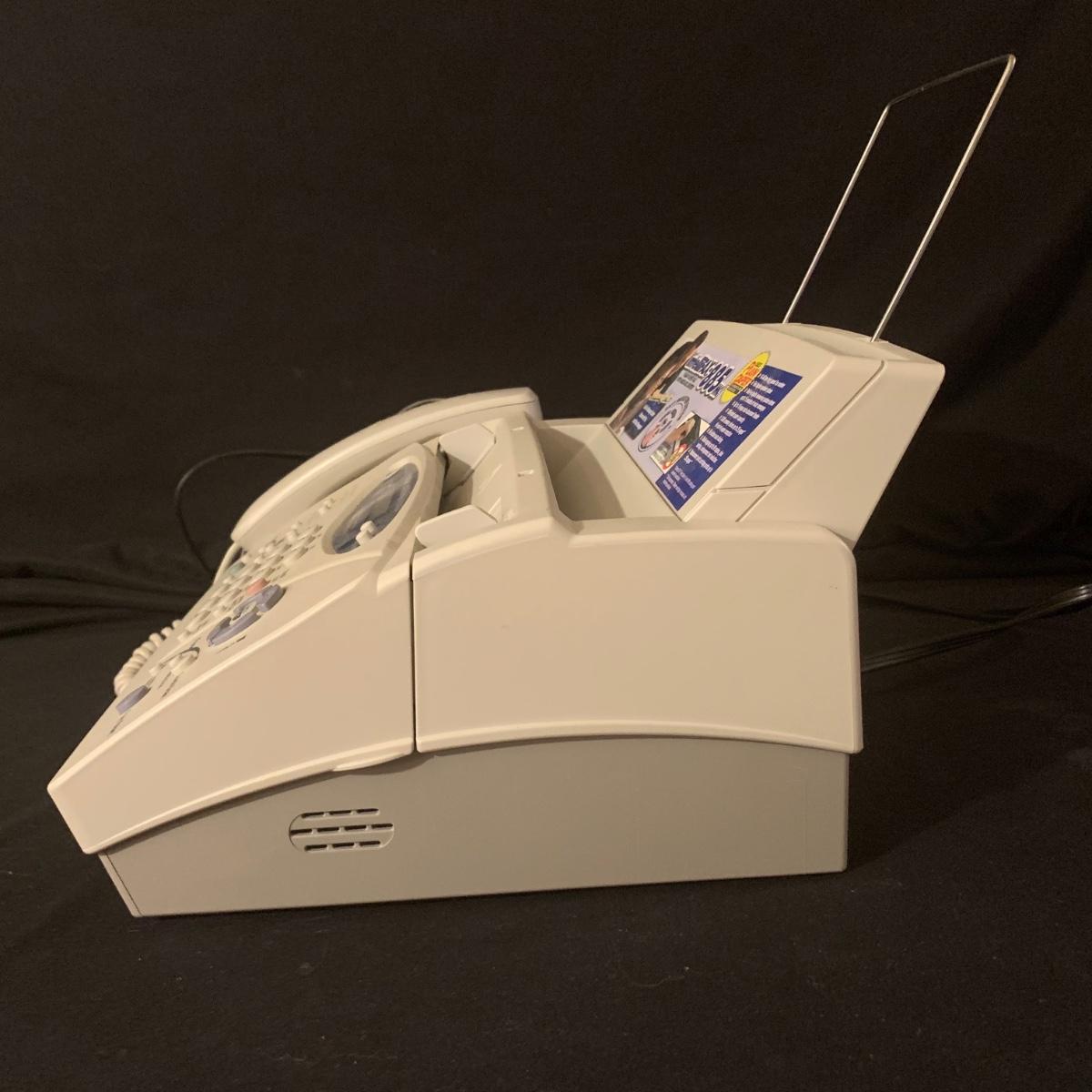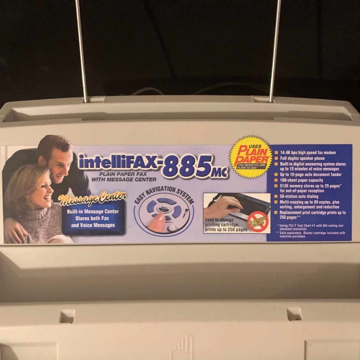 Brother IntelliFAX 885MC fax machine. Machine powers on and appears to be in good condition. Unable to test functionality. Item measures, 13.25”L x 10.5”W x 11”H and comes with both phone and power cords. Phone handle is sticky, but should be able to be cleaned. Model number: 885MCc
