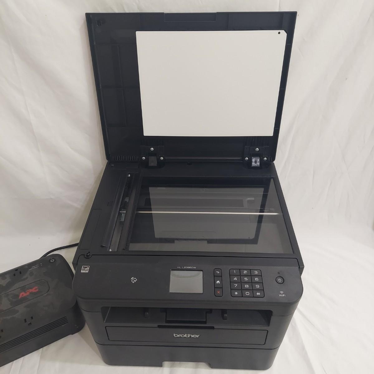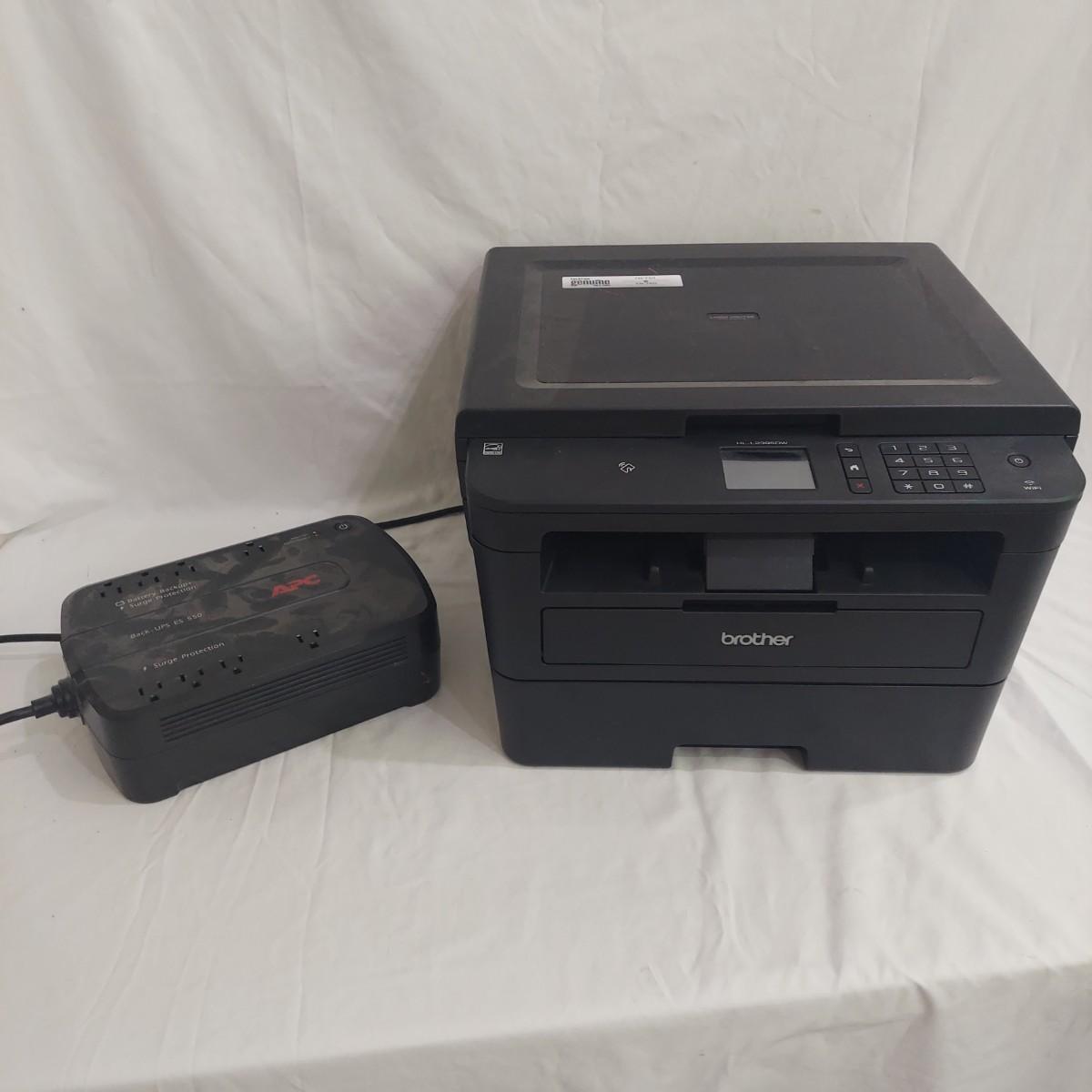 Lot includes a Brother brand laser printer. Printer measures 16” x 16” x 11”H. Also includes an APC dual battery backup and surge protector. Please see photos for details. Local Pickup Only