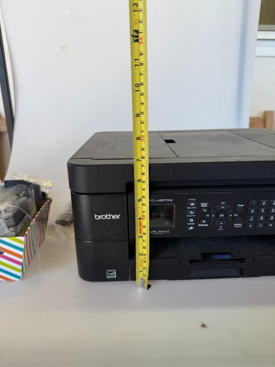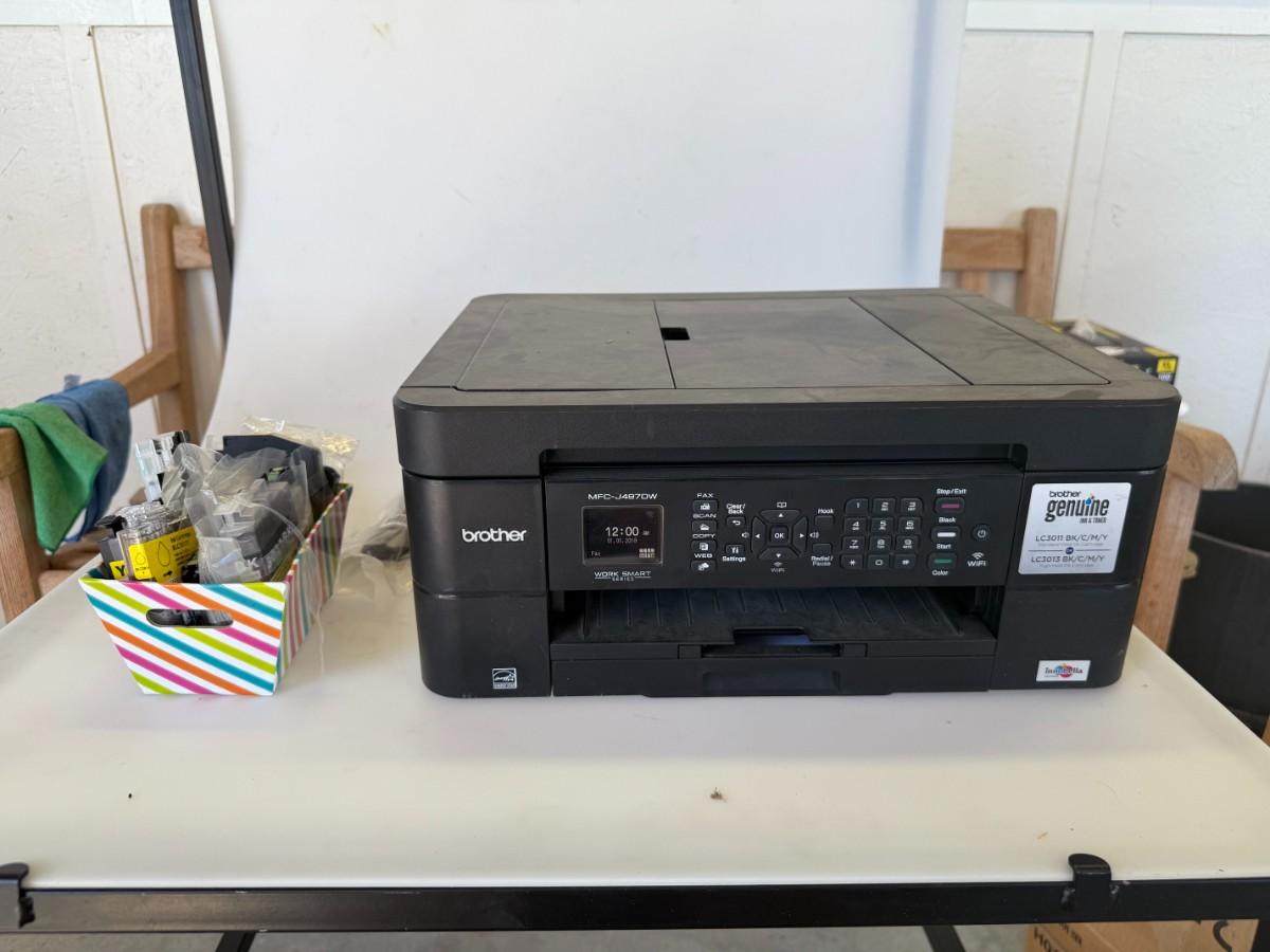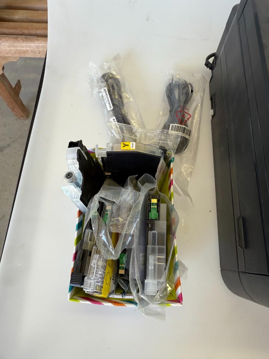 Reliable all-in-one printer/copier/scanner/fax. Includes a bonus basket of ink cartridges. Powers on, untested.