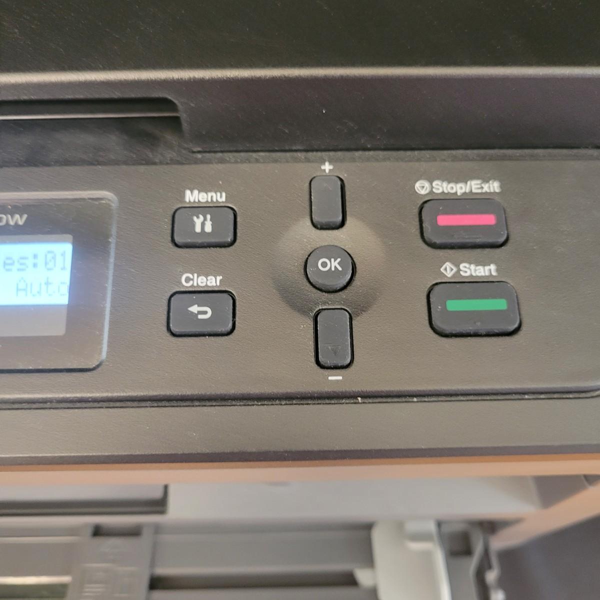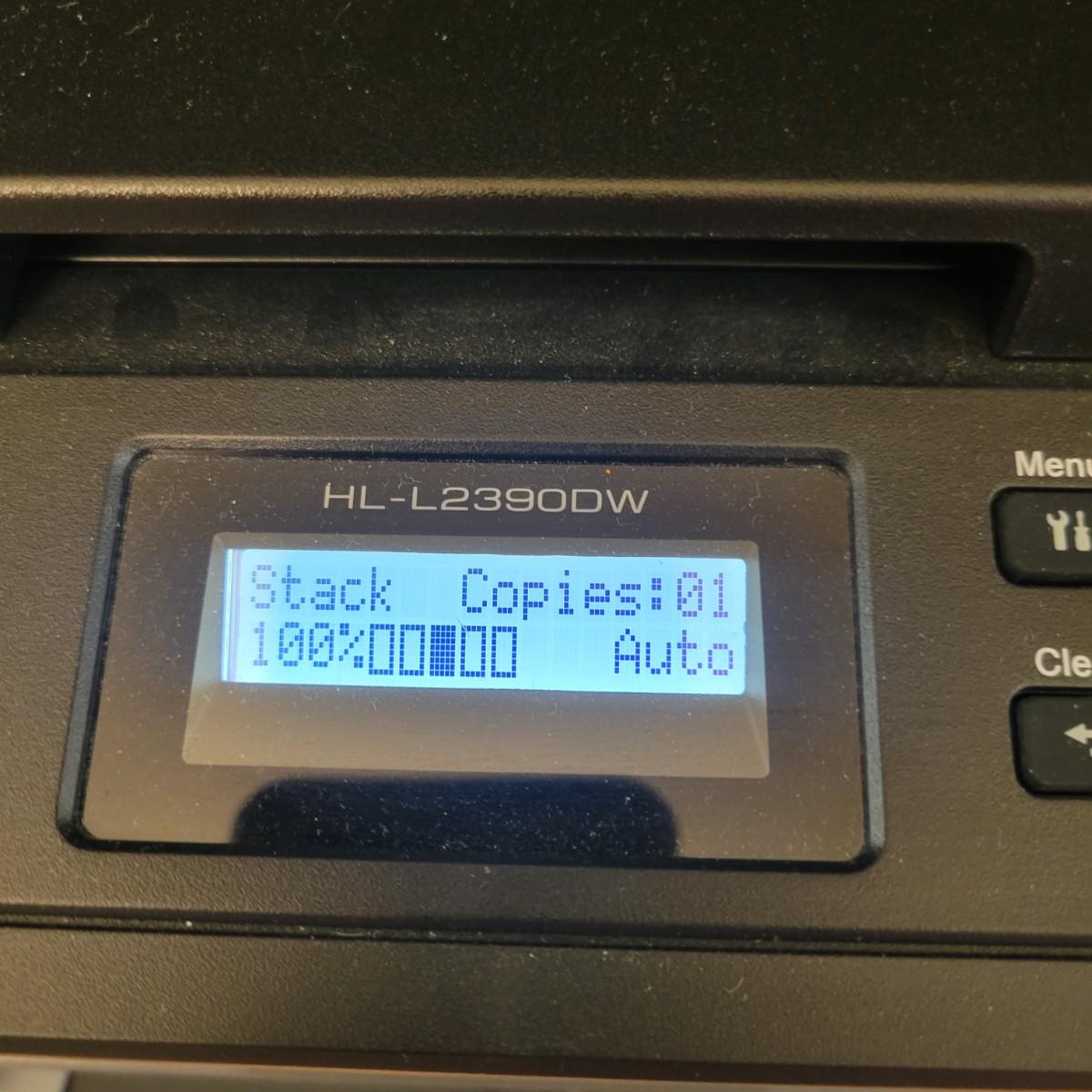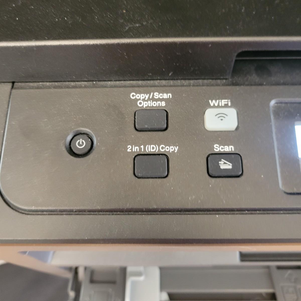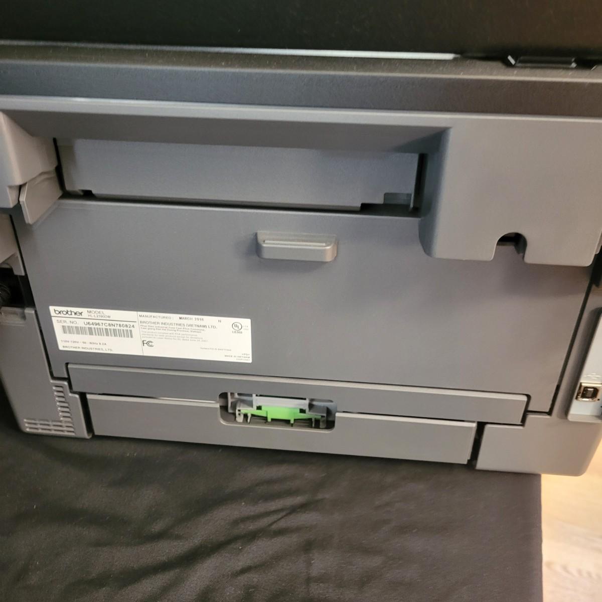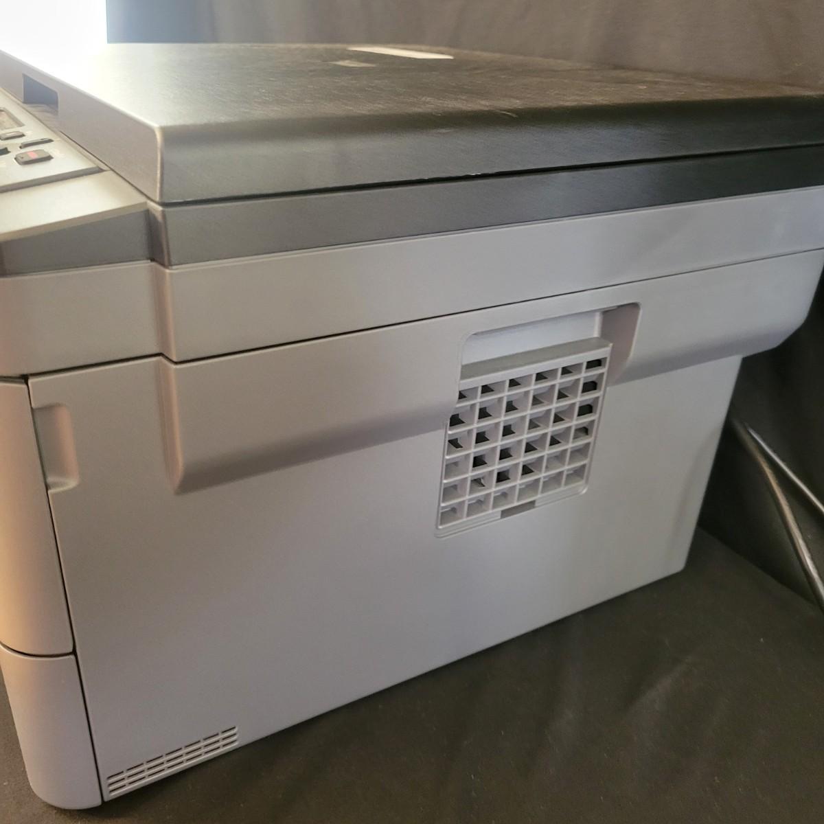 A Brother copier/scanner/printer in good condition with no notable damage and includes USB cable. This is a Brother HL-L2390DW model and measures approximately 16" x 15.5" x 10.5". Machine powered on when plugged in. Local pickup only