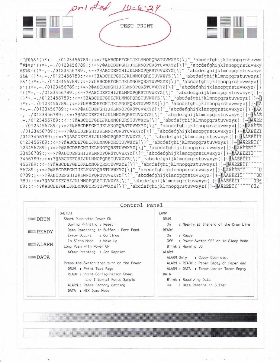 Brother USB laser printer model HL-1440, prints good, see test page print sample. For Windows or Mac. Software disc included.