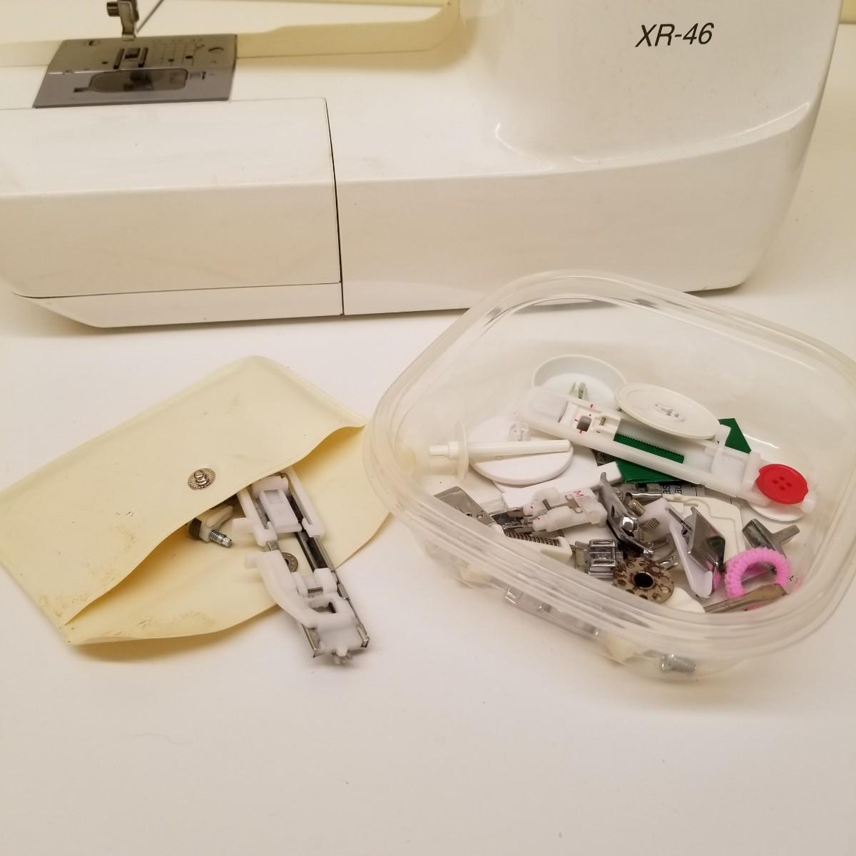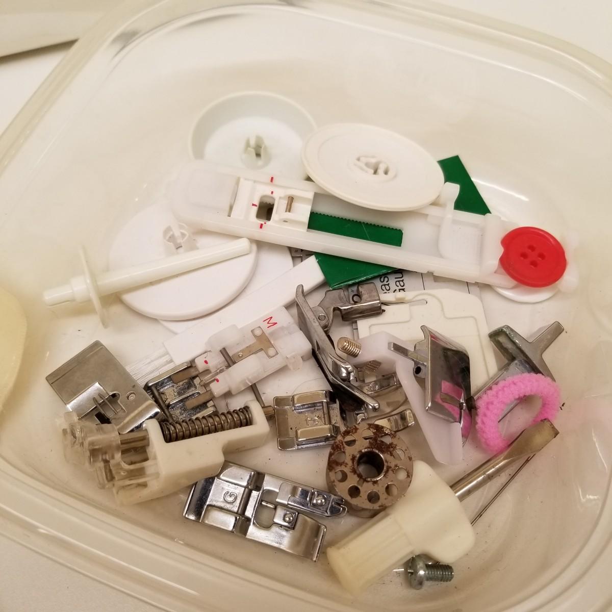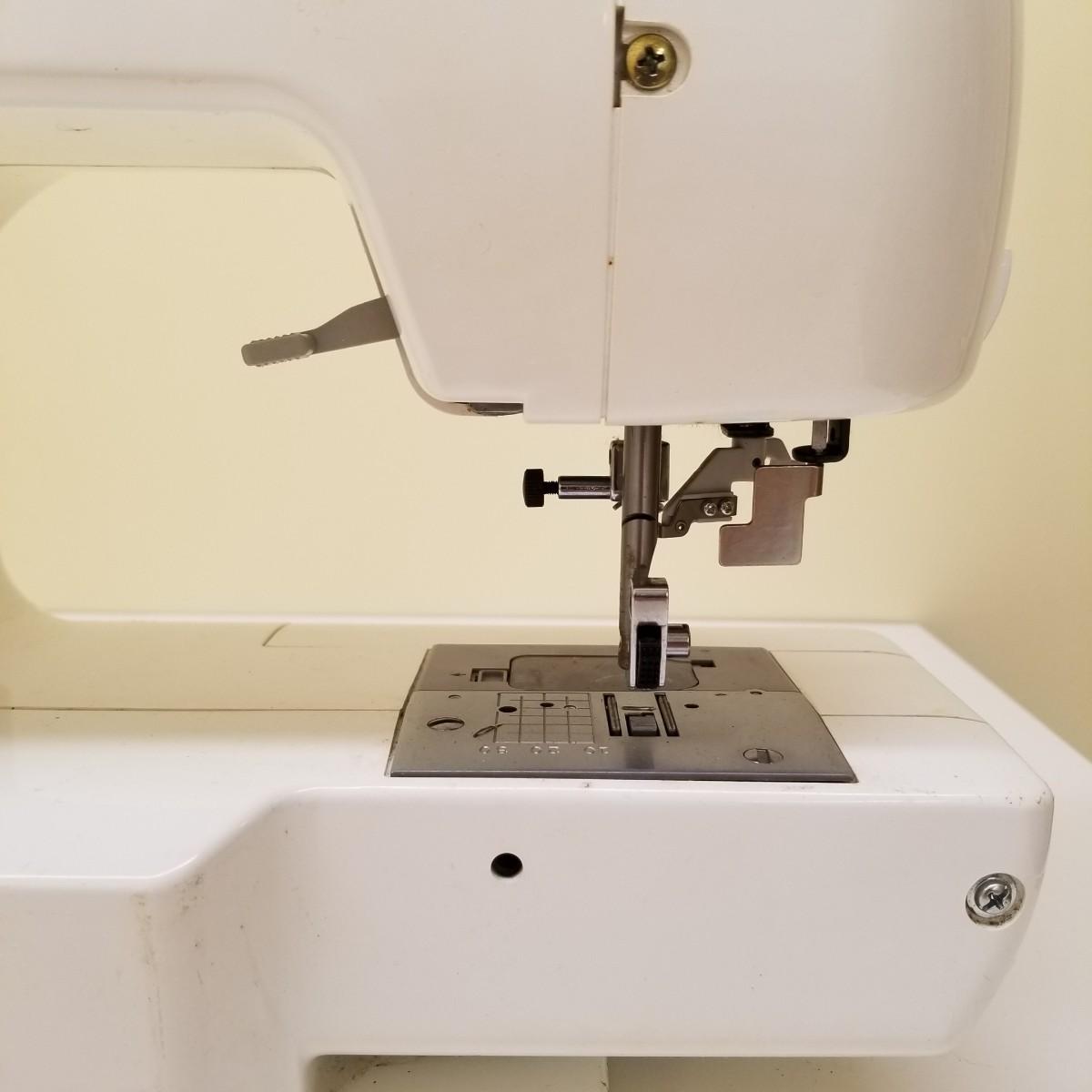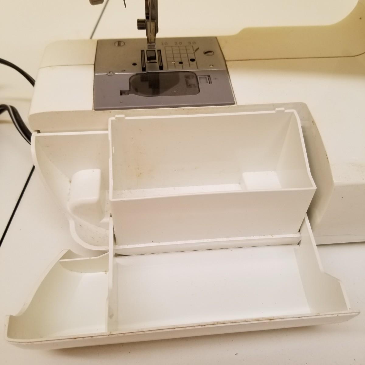 Tabletop model with case and extras, this machine has twenty-seven preset stitches, reverse, stitch length and more. Comes with foot controller, tested working. See photos for details. Shipping available.