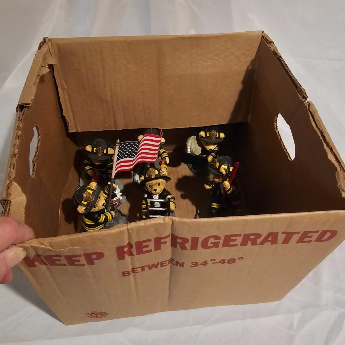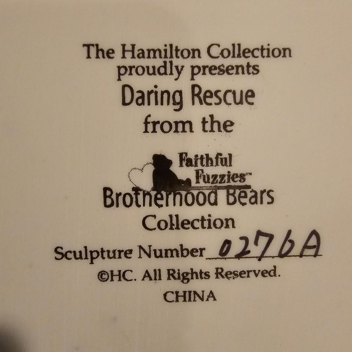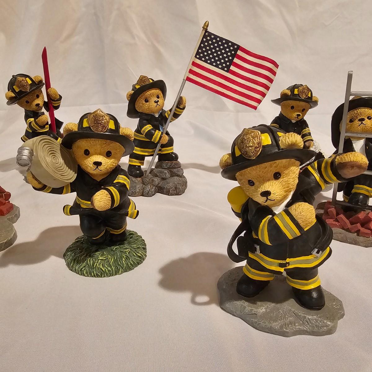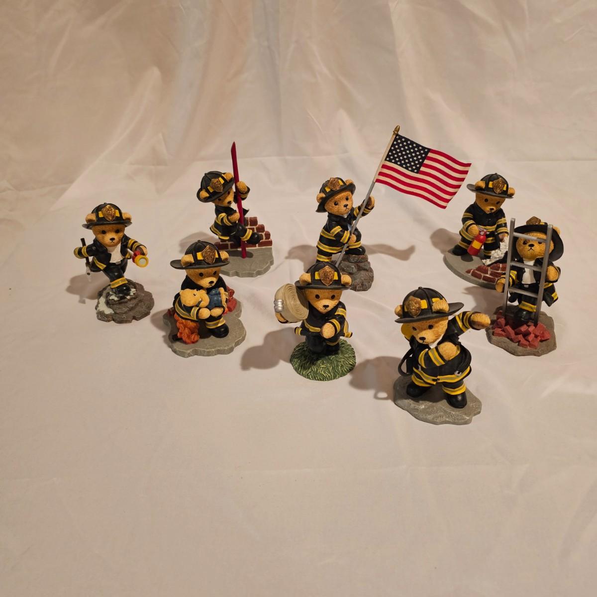 Eight brave bear firefighters going about their duty. Figures are resin, measure 3" x 4" x 5"H average. From the Hamilton Collection series. Each statue has a number and description on the bottom. See photos for details. Shipping available.