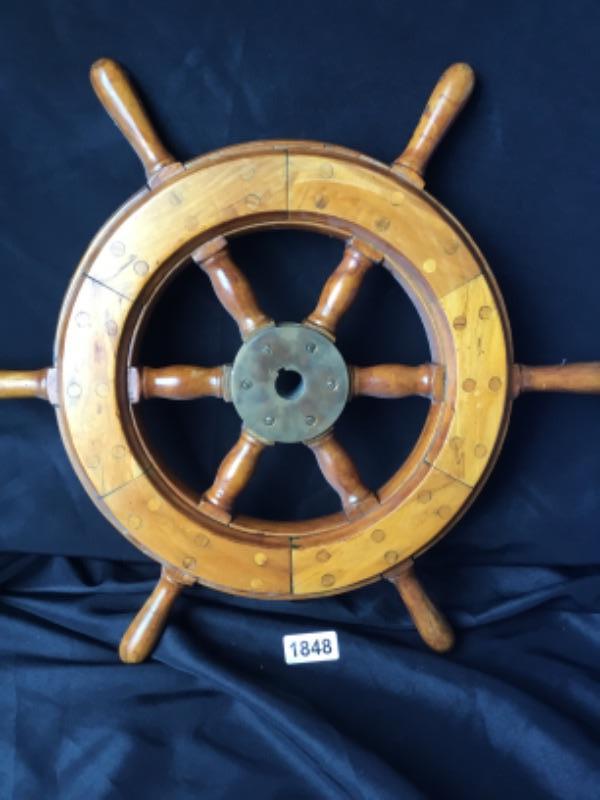 Brower Wooden Ships Wheel with Brass Lot 1848