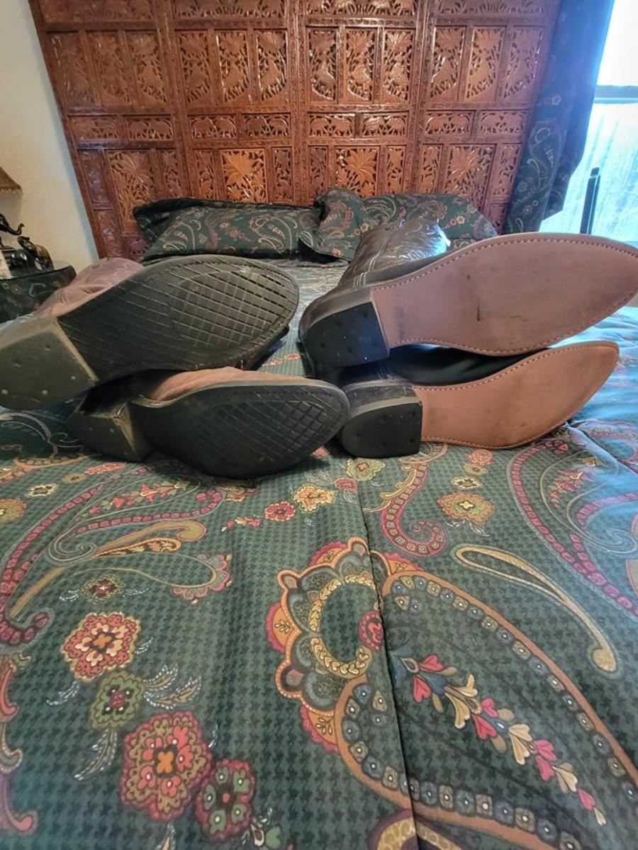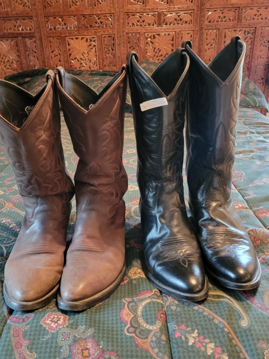 Brown and black pair of boots mens size 110 ee leather Made in India