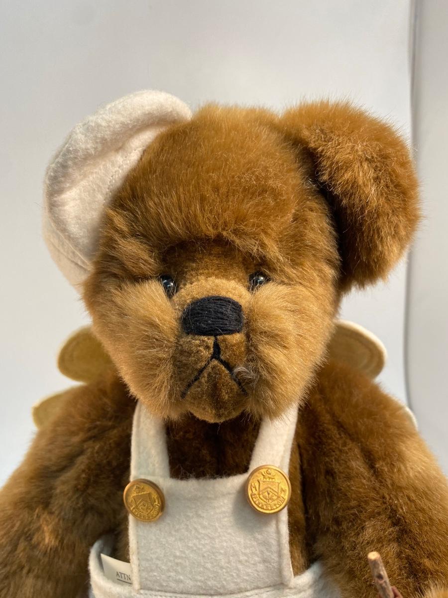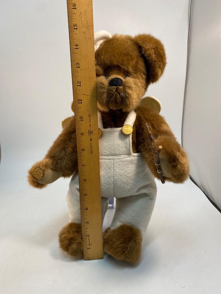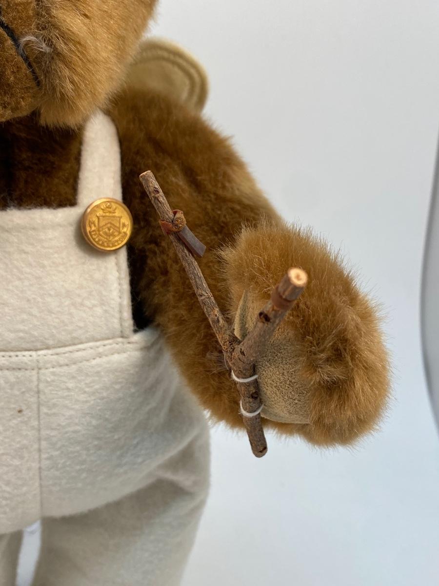 Brown Angel Boy Teddy Bear with Stand. In good previously displayed condition. Rubber band on slingshot has broken off probably from age and slight discolor to wings. About 15” size.