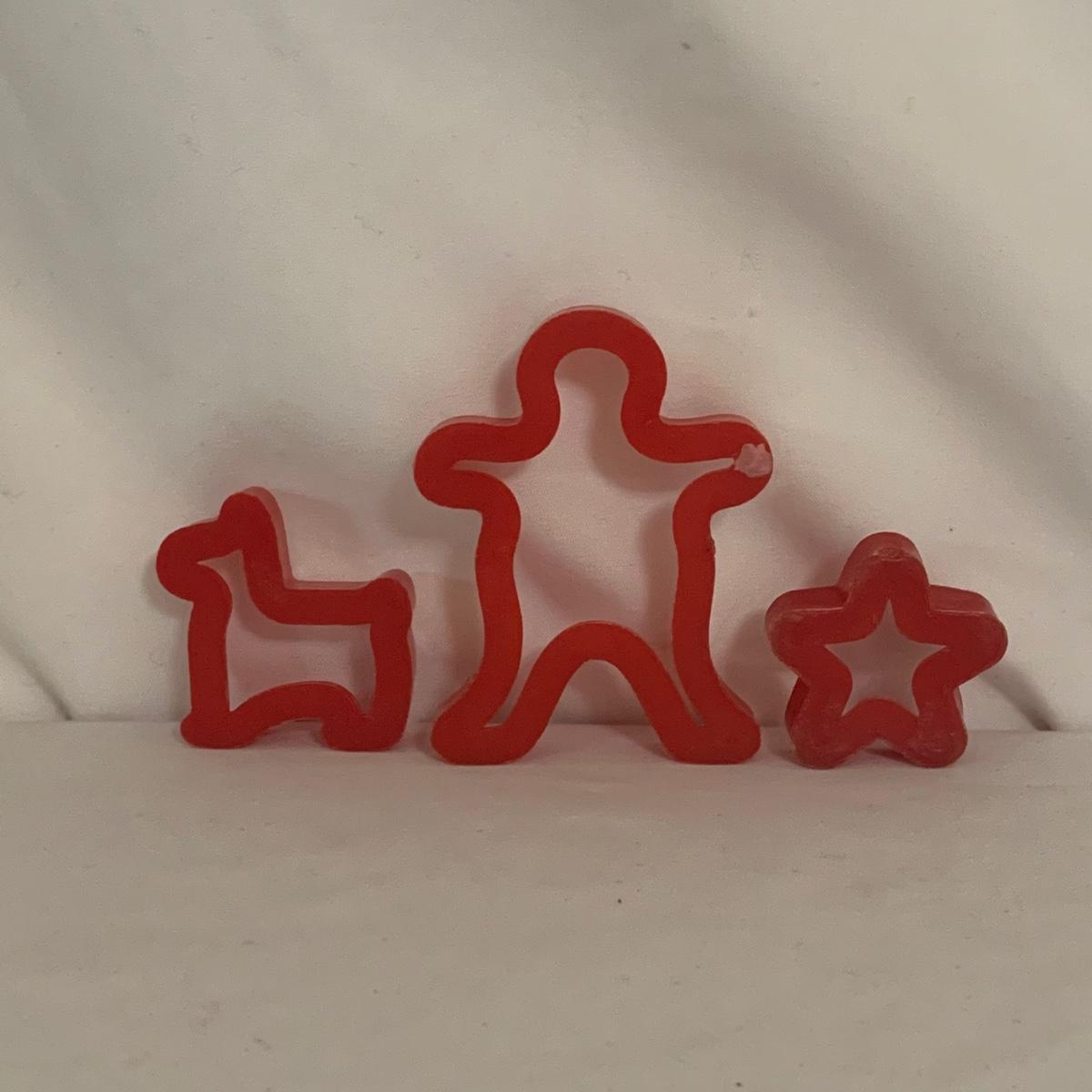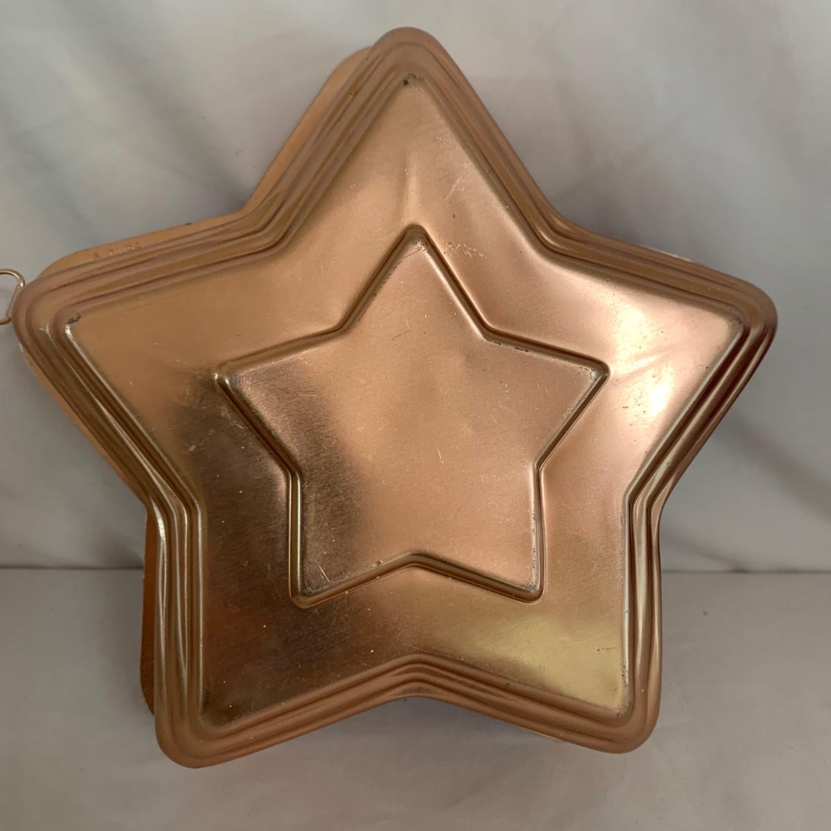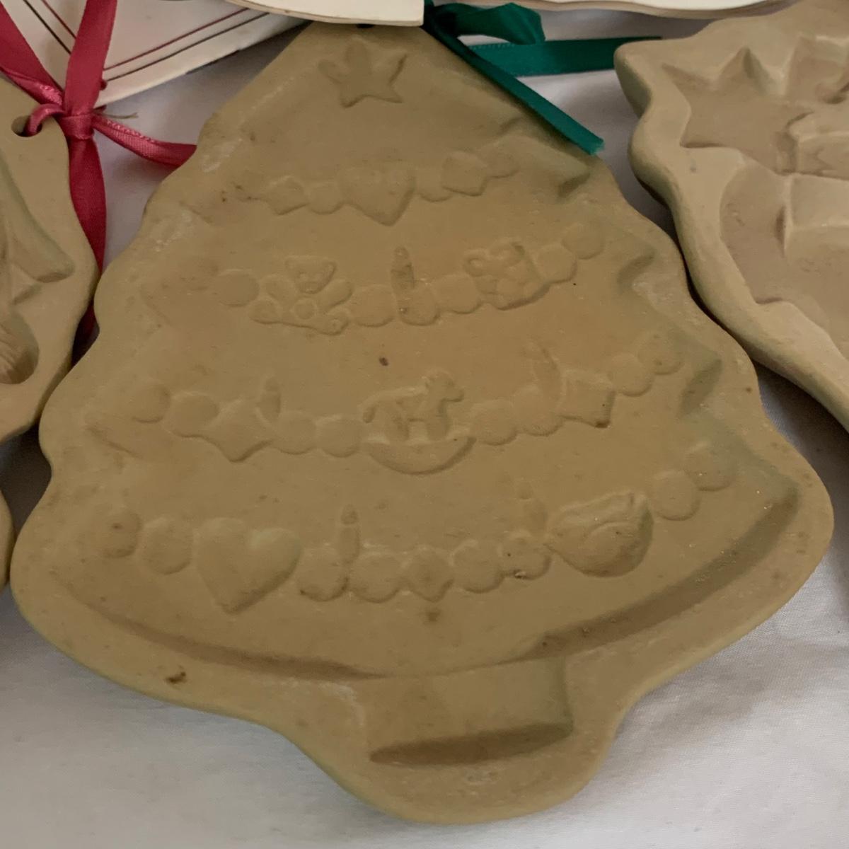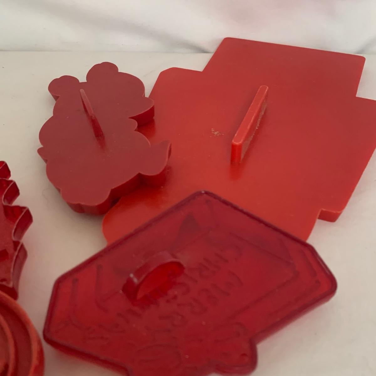 Three Christmas-themed Brown Bag Cookie Art molds in good condition, with signs of gentle use. Four copper-toned jello/cake molds, in good condition, though they have some signs of use, see photos. They have hooks to hang on the wall as decor. The corn shaped mold measures approximately 10” x 5.5” x 2.75”. 20+ plastic cookie cutters with various holiday themes, plus Snoopy and Porky Pig! There are 10 metal cookie cutters with handles, with Christmas and animal themes - the animals are very small at about 1.5”. And there are 11 open metal cookie cutters that are a bit tarnished.