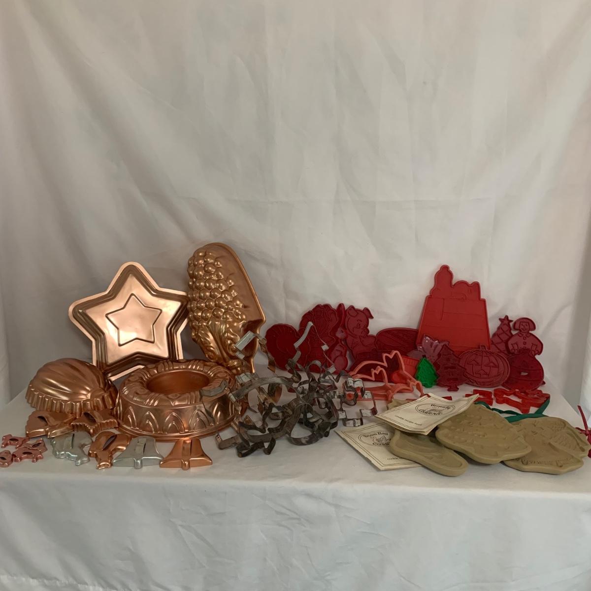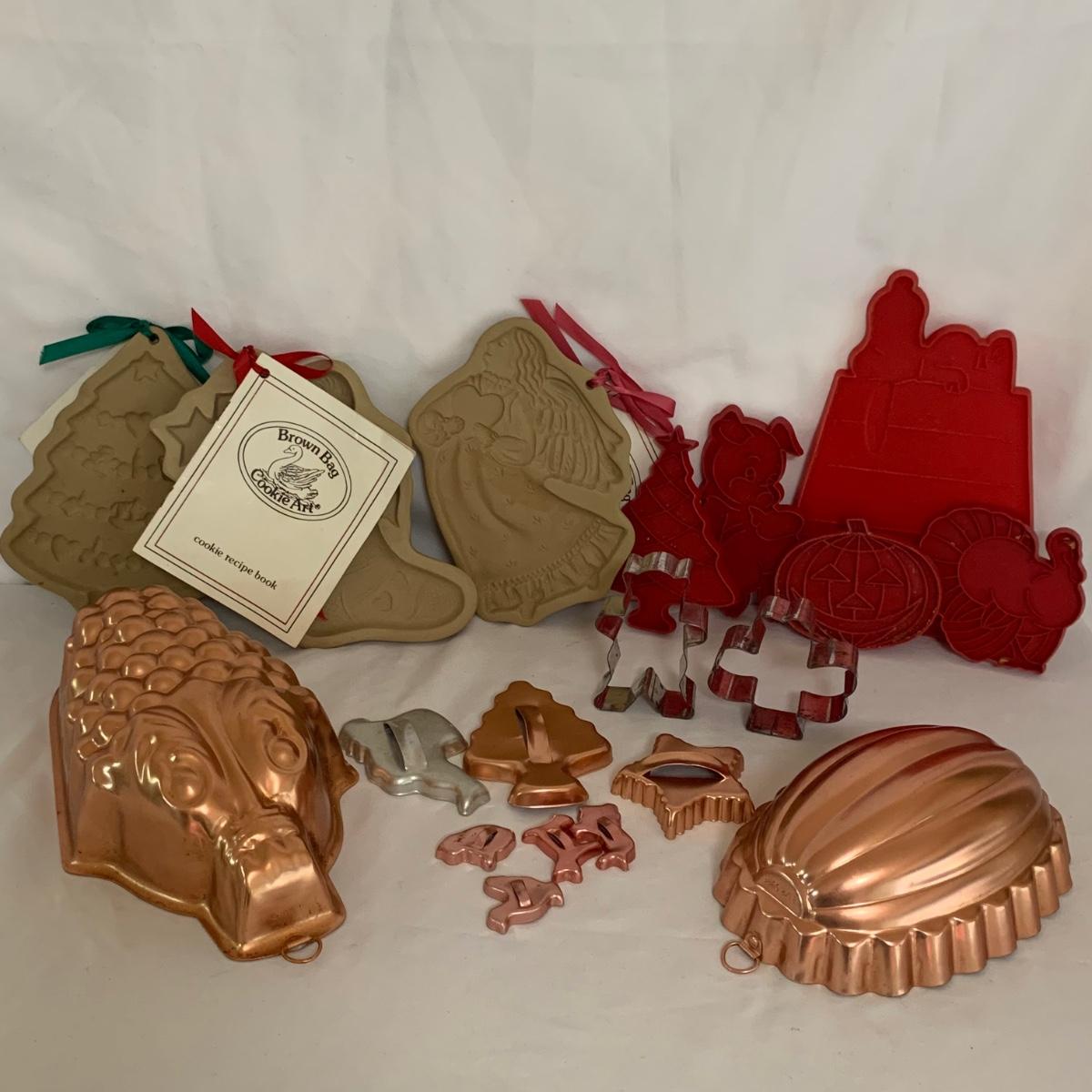 Brown Bag Cookie Art Molds, Copper Toned Jello Molds, & Vintage Cookie Cutters (K-HS)