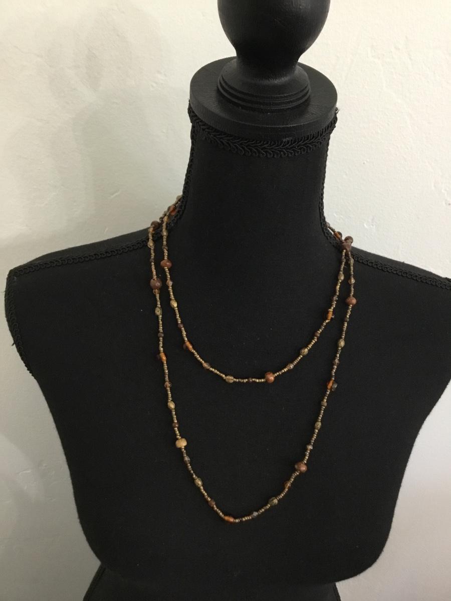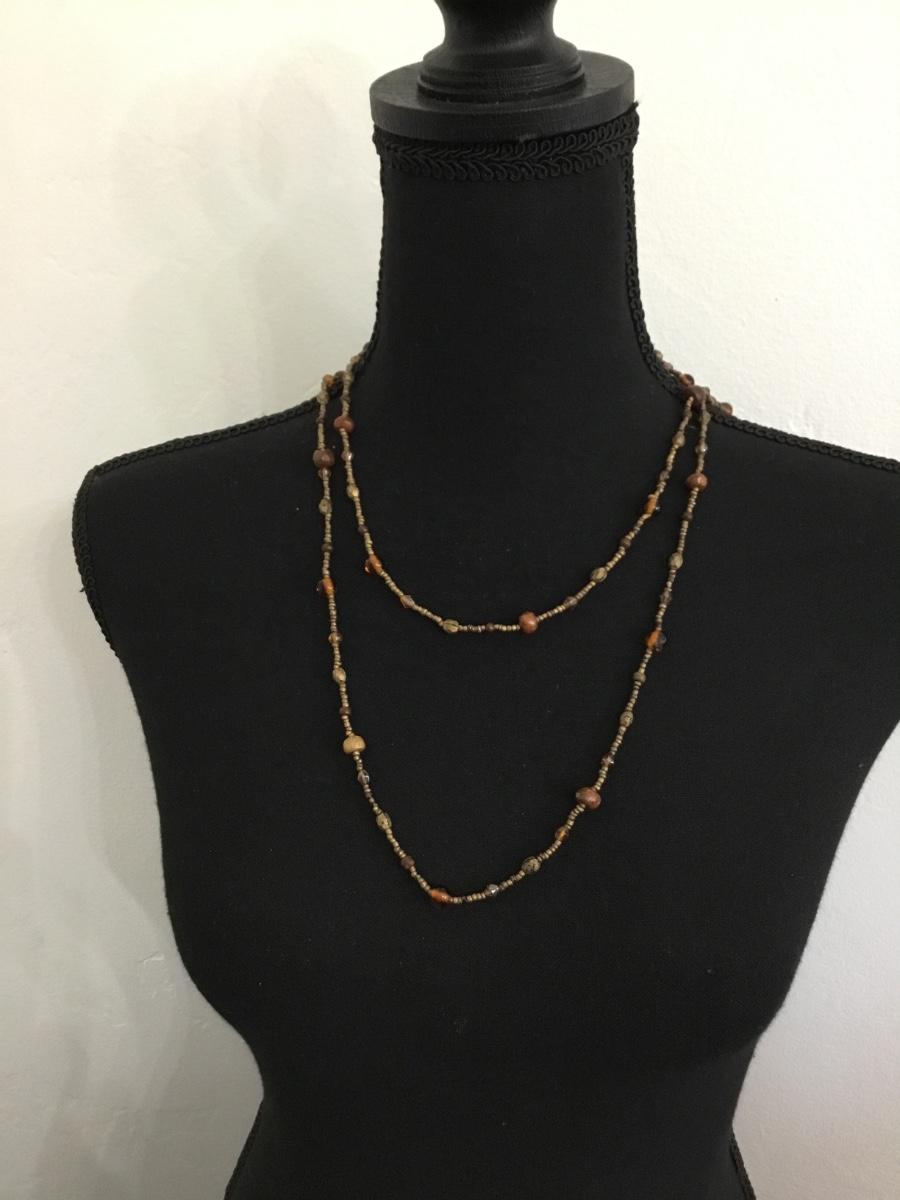 Brown beaded long fashion necklace