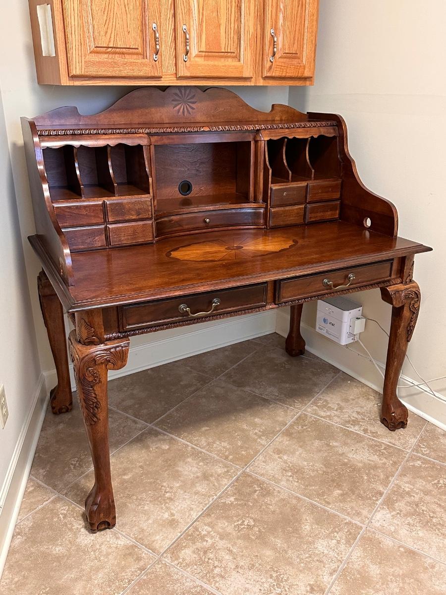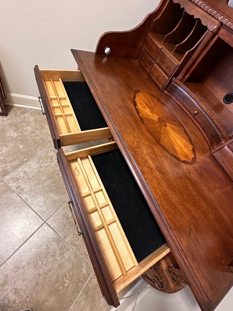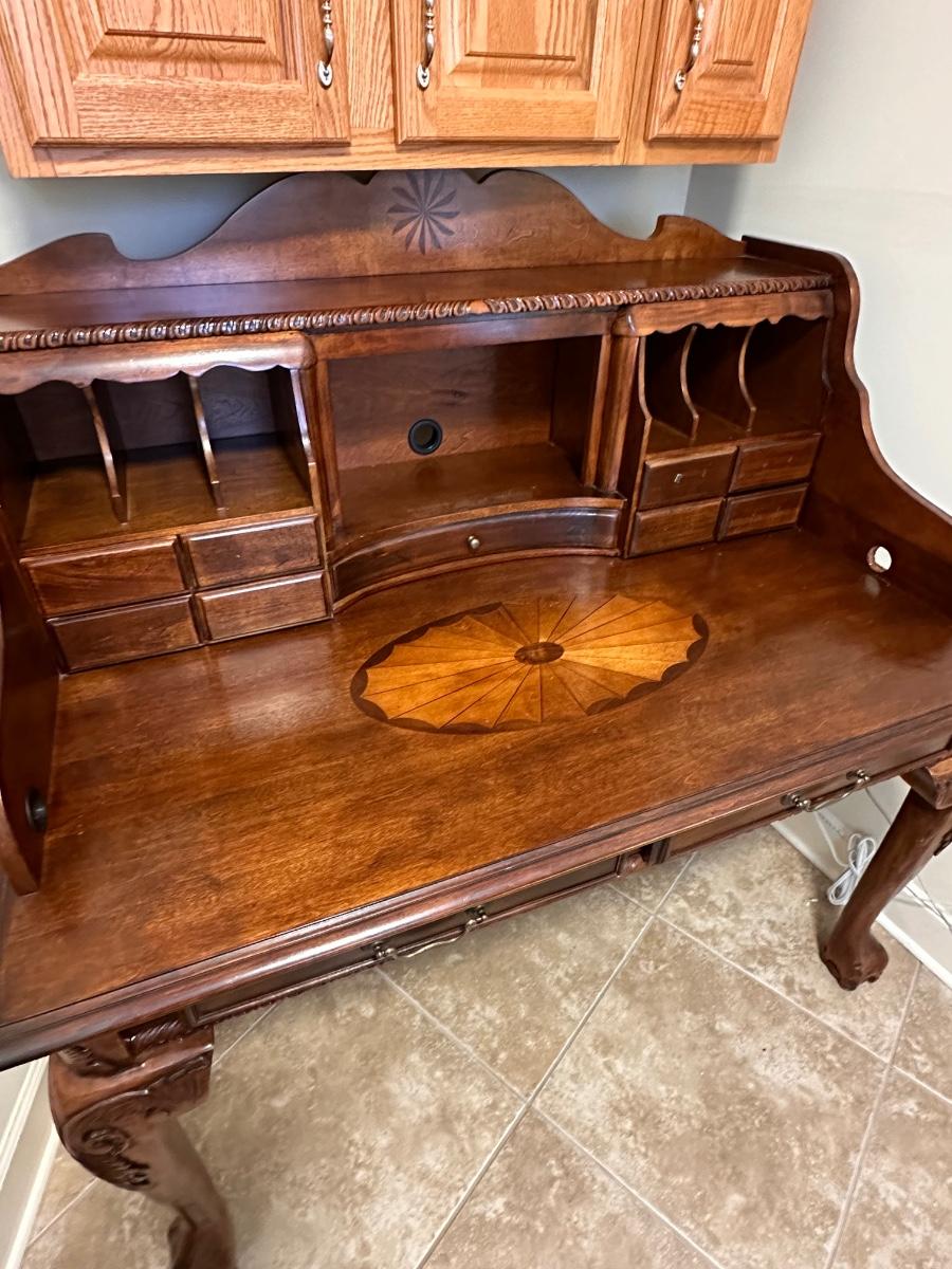 Brown Cherry Laminated Inlaid Claw Foot Secretary ~ *Read Details