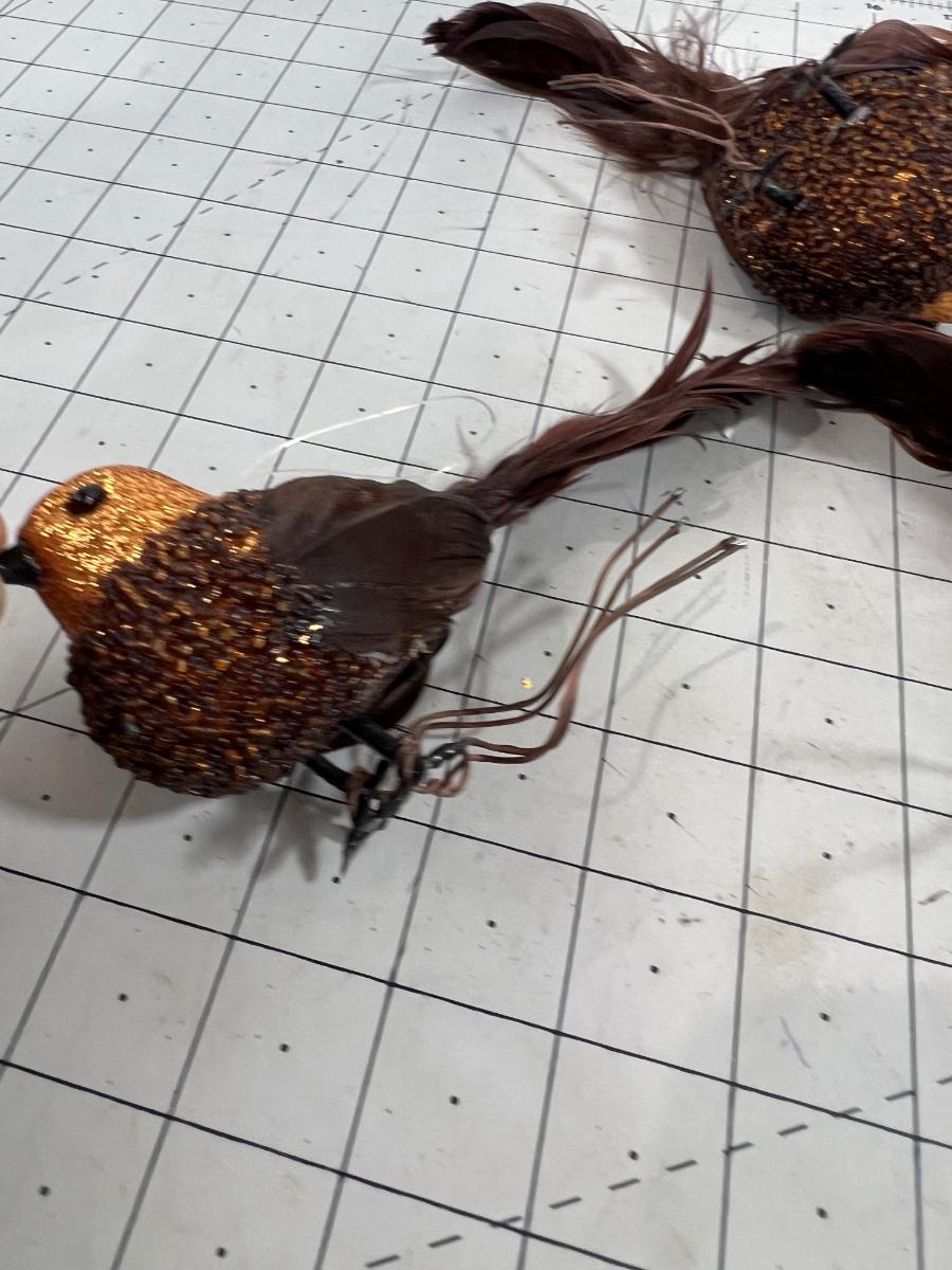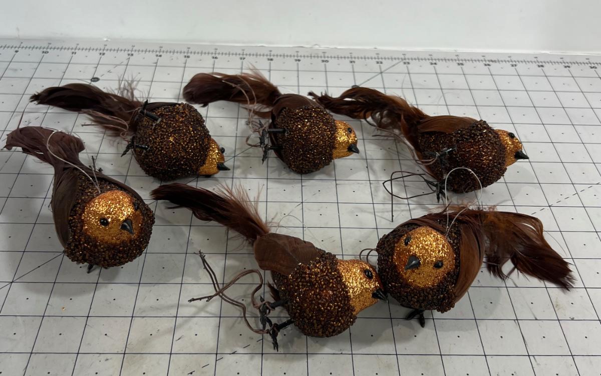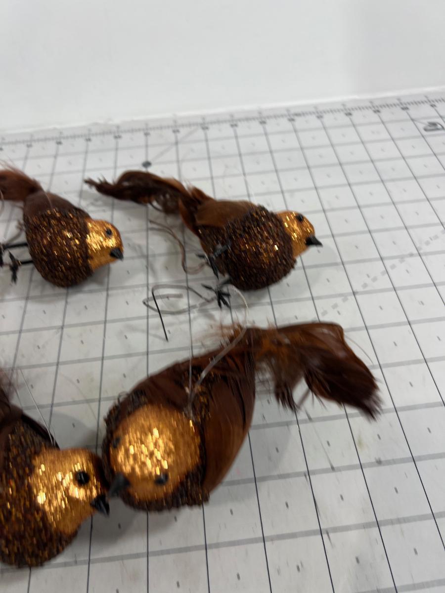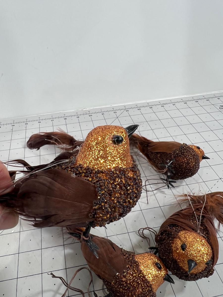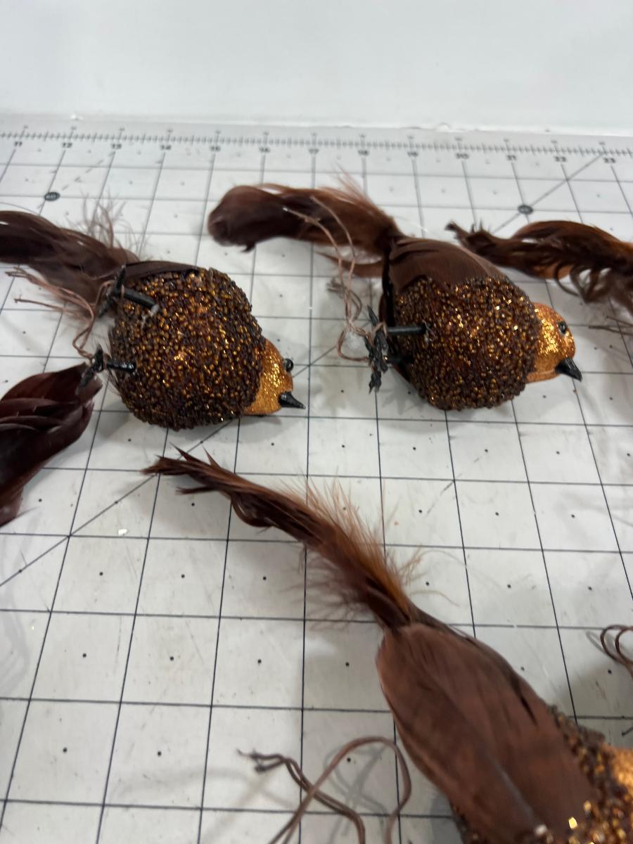 Brown & Copper Sparkle Clip on Ornaments with Real Feather Tail