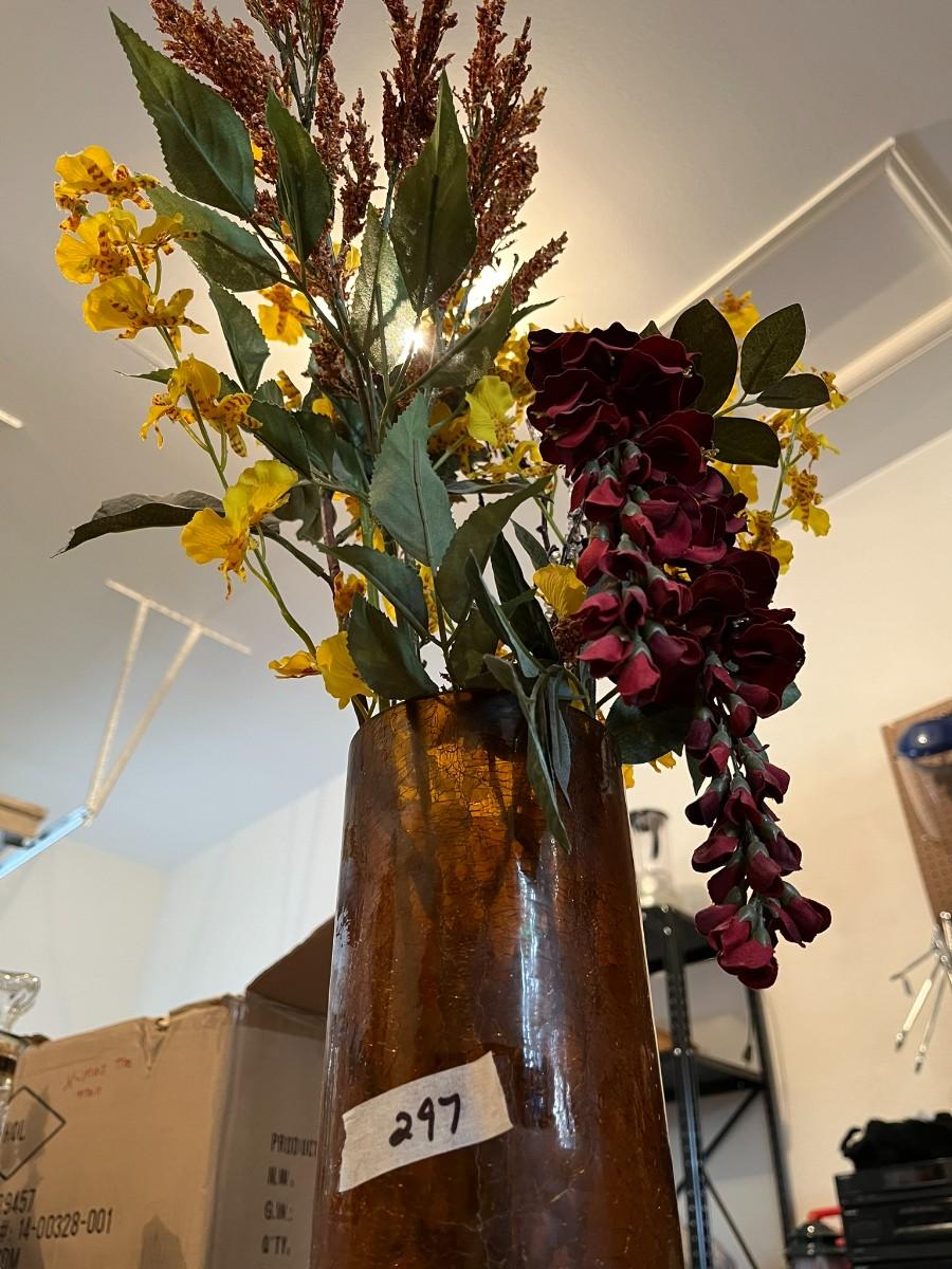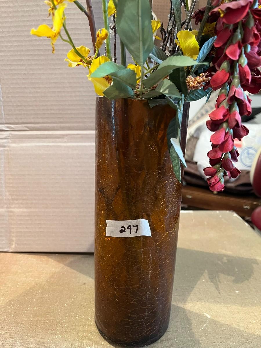 Brown Crackled Glass Vase With Dried Assorted Flowers