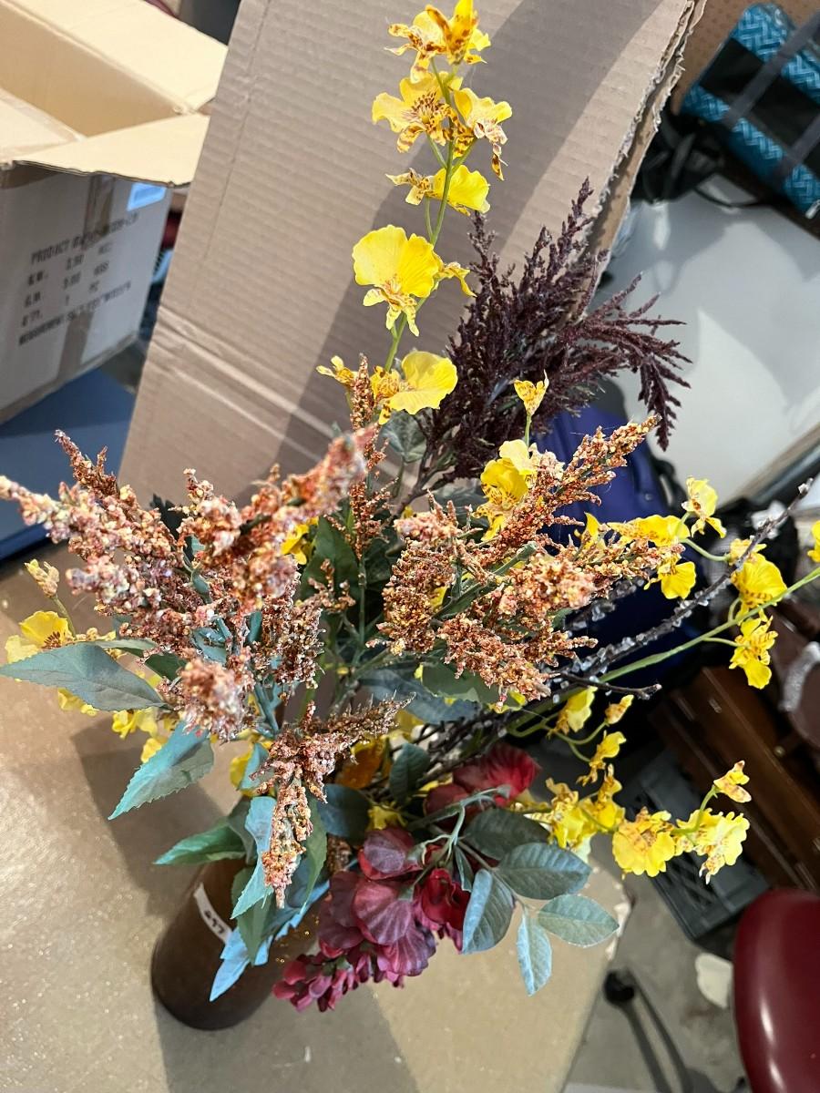 Brown Glass Vase With Dried Assorted Flowers
