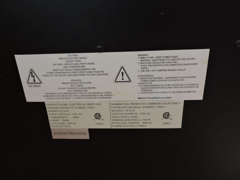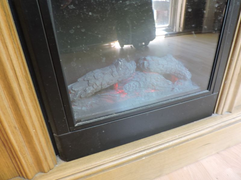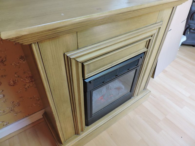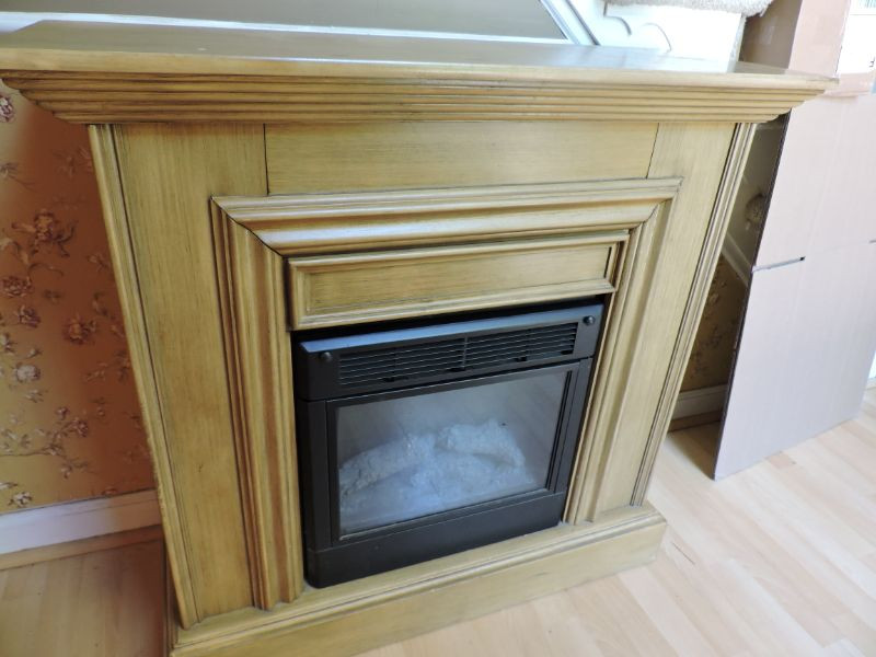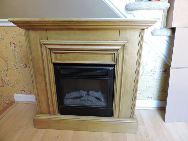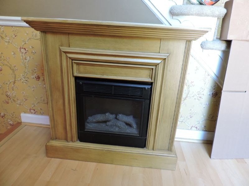 Wood-grain Sunbeam Electric Fireplace Model #FL18-R - 120VAC, 1500W, 60hz. 37”x36”x13.5”