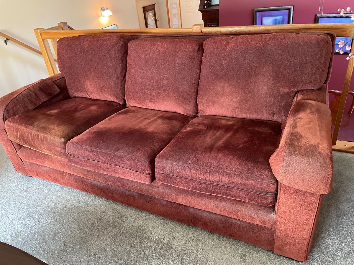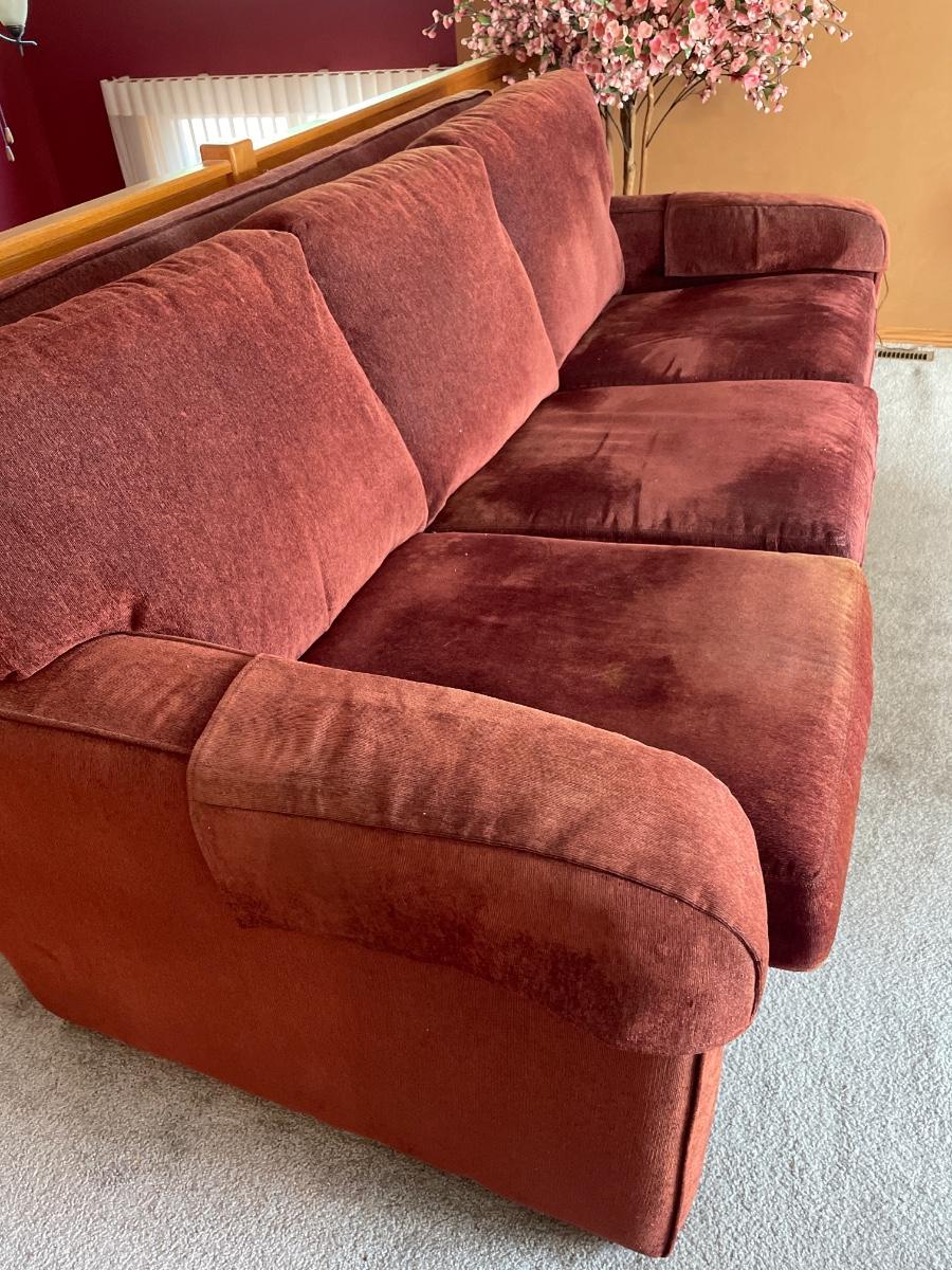 Brown couch has some wear