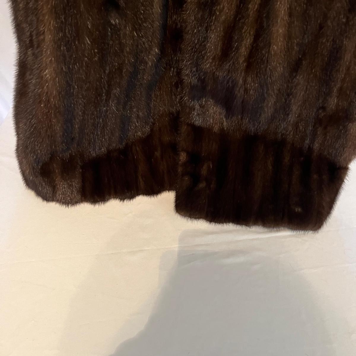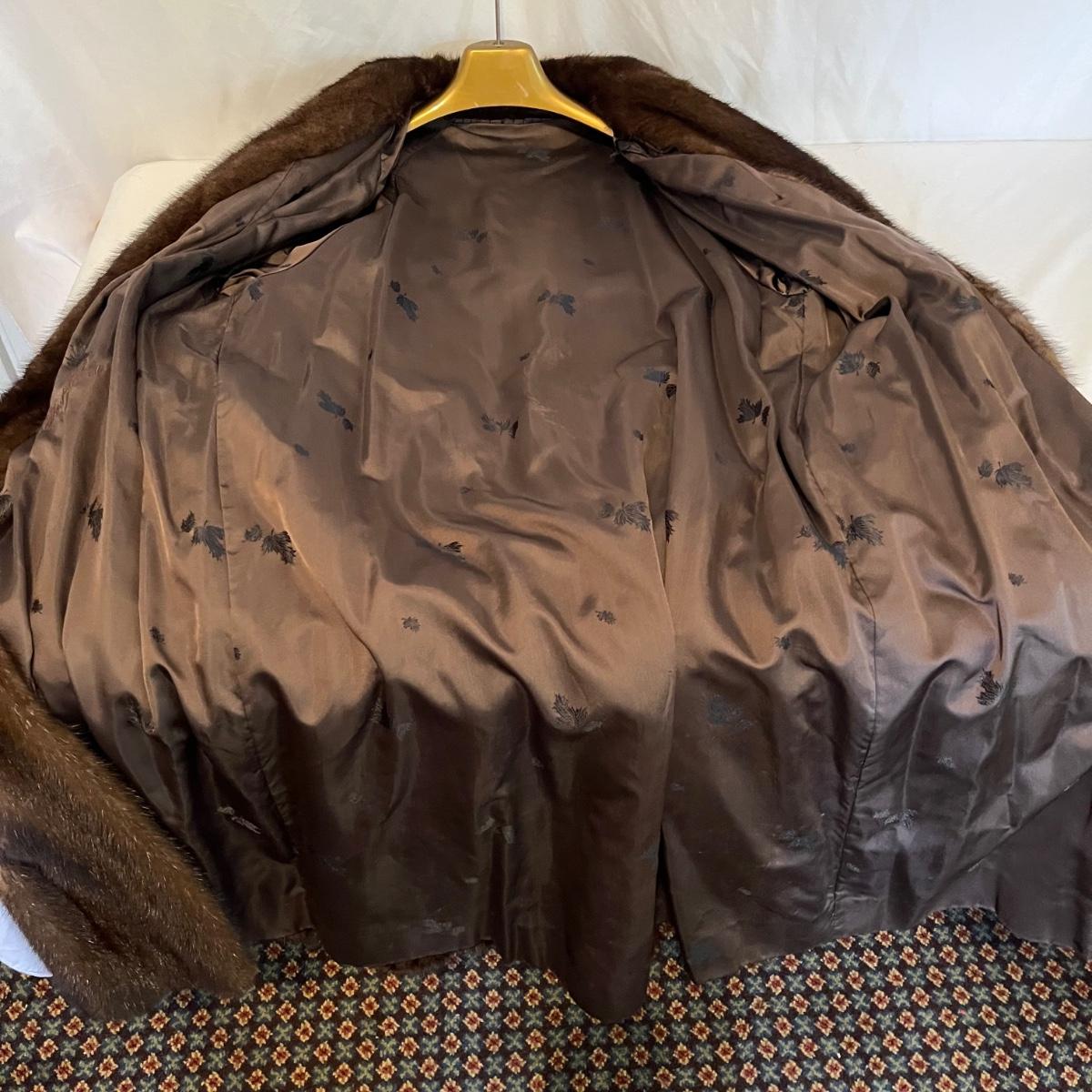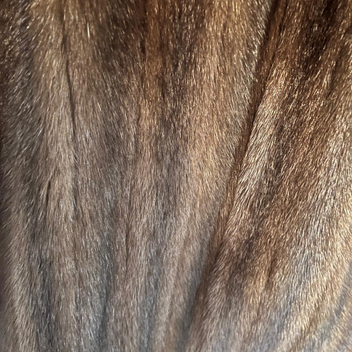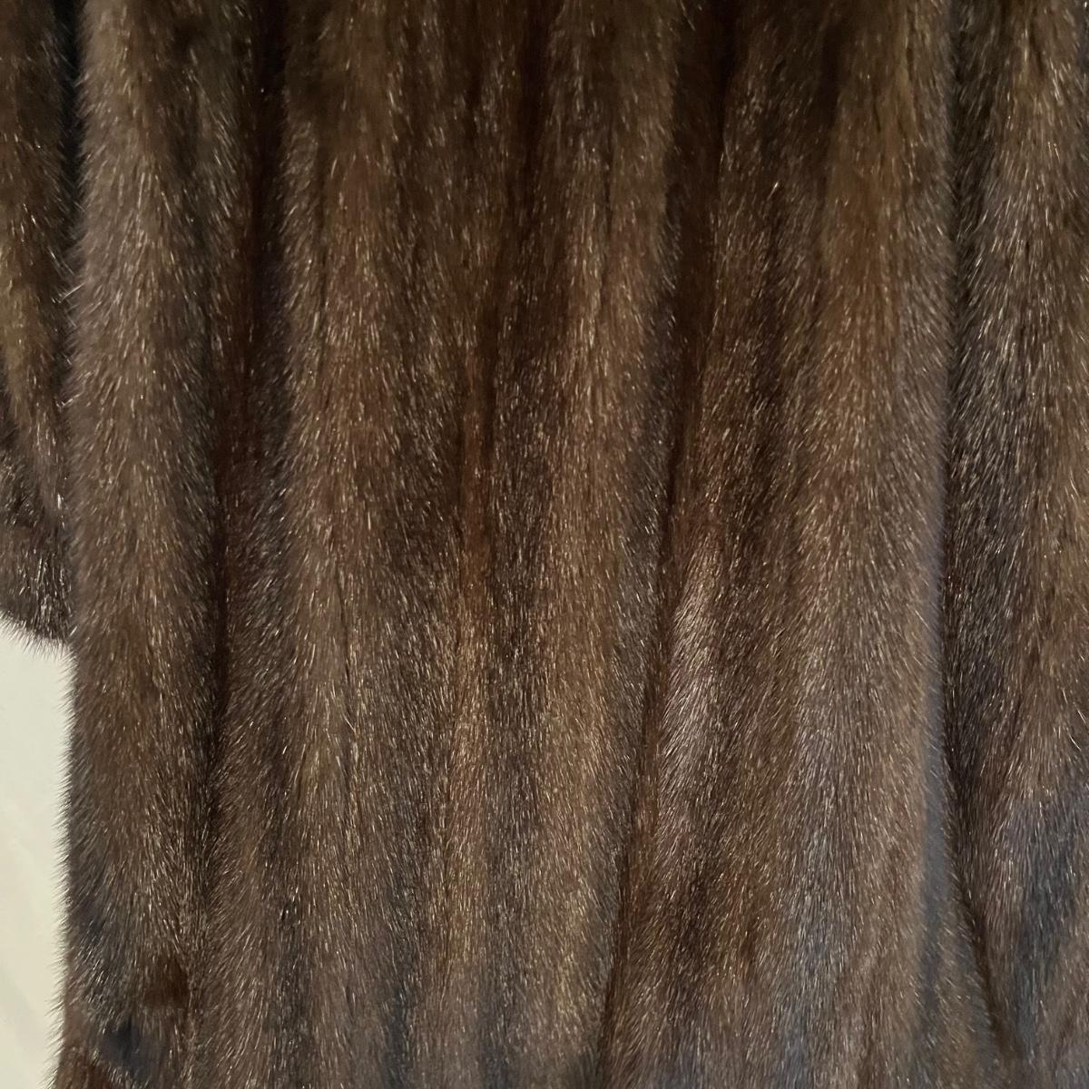Lot includes a long brown fur mink coat that is 50” long. The Left shoulder has lining that is unstitched. This coat is heavy and has two deep outside pockets. Note the stitching on the inside liner and the “Josephine” trademark on the inside. There is no size label yet it seems as if it is a size 14.