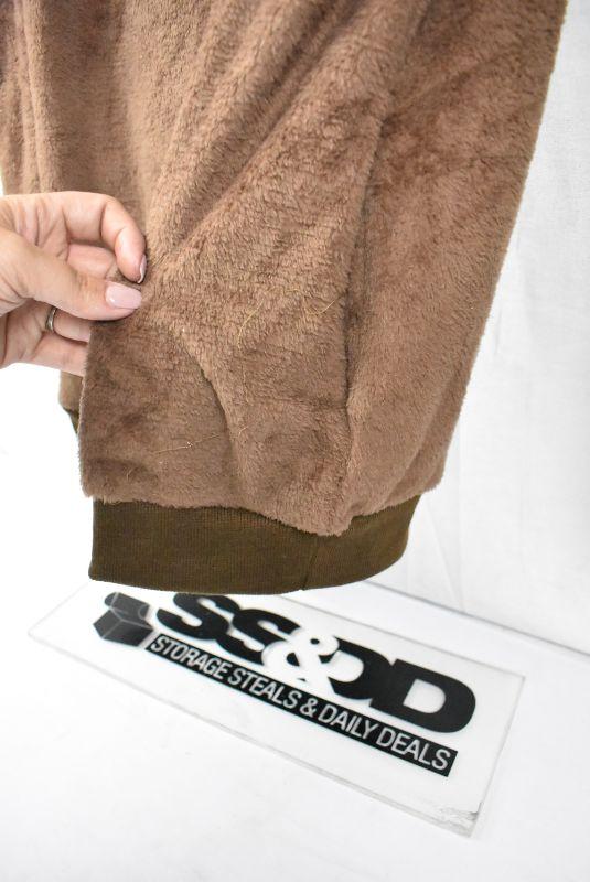 Brown Fuzzy Hoodie Sweater, Super Soft Size Medium, side pockets