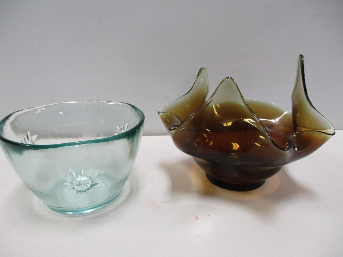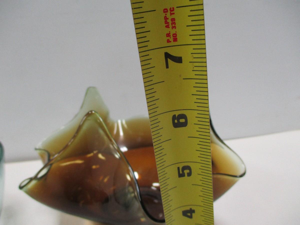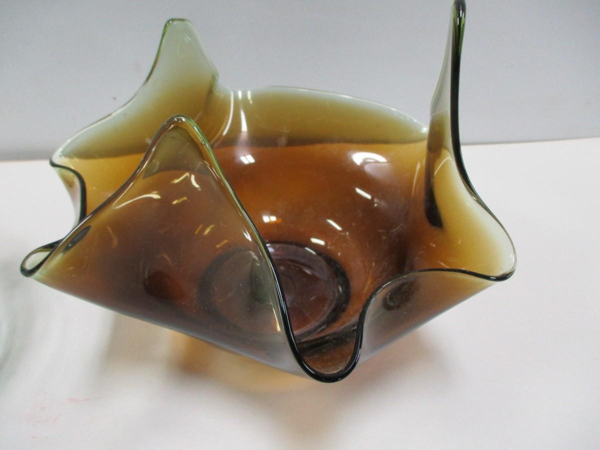Brown Glass Decorative Handcrafted Handkerchief Dish & Sun Design Dish
