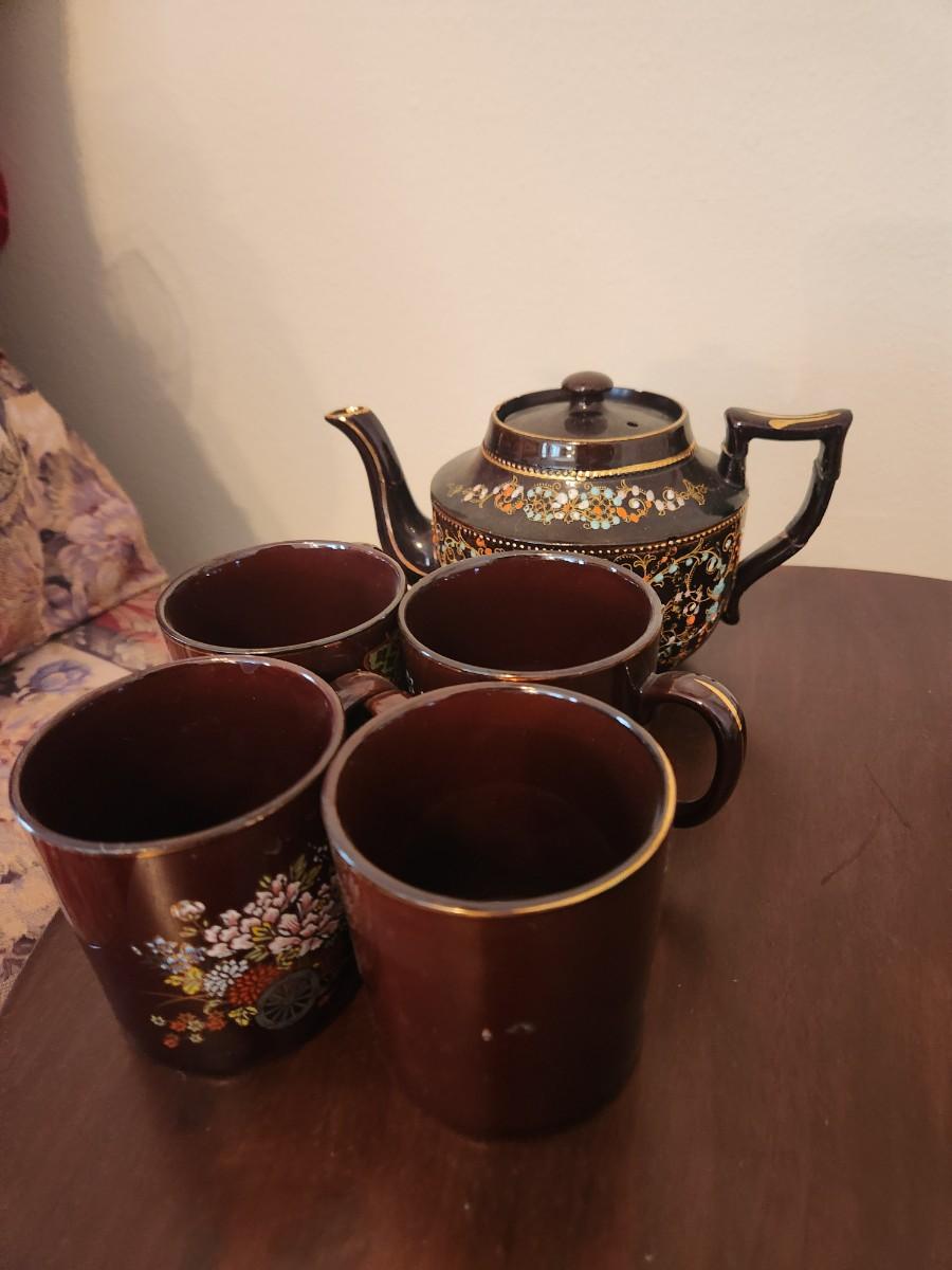 Brown Gold Trimmed Tea Set