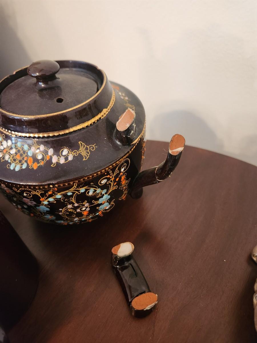 Broken handle on teapot