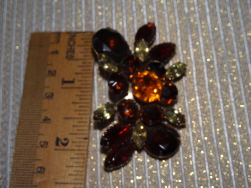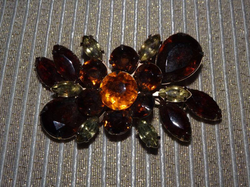 Brown & Golden Rhinestone Brooch
