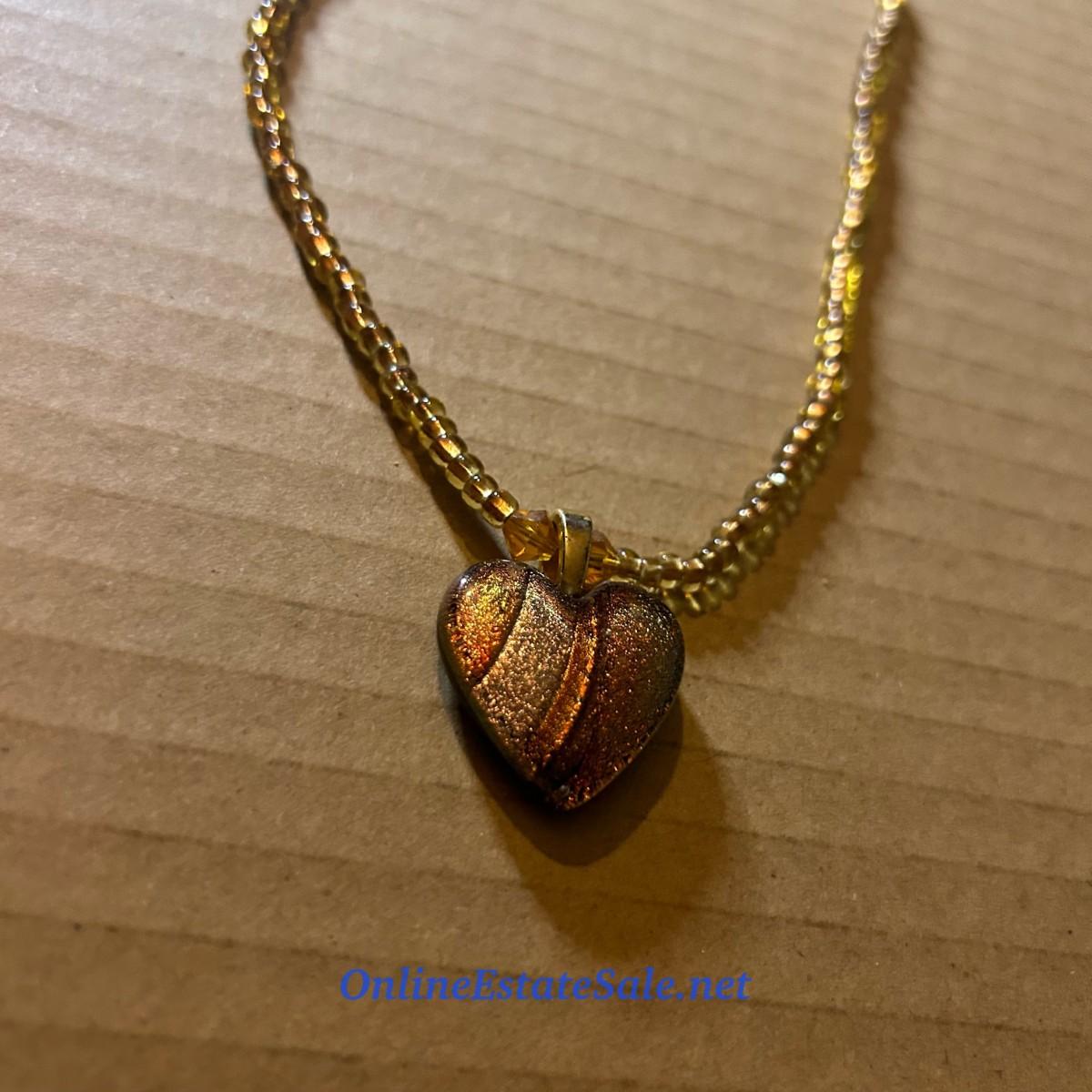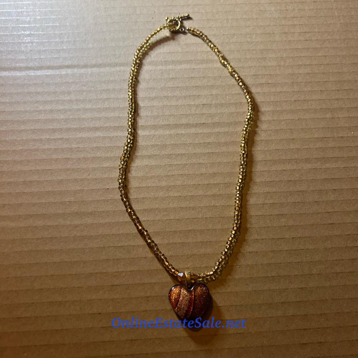 18in Gold and Brown Beaded Necklace with Heart Pendant and Toggle Clasp