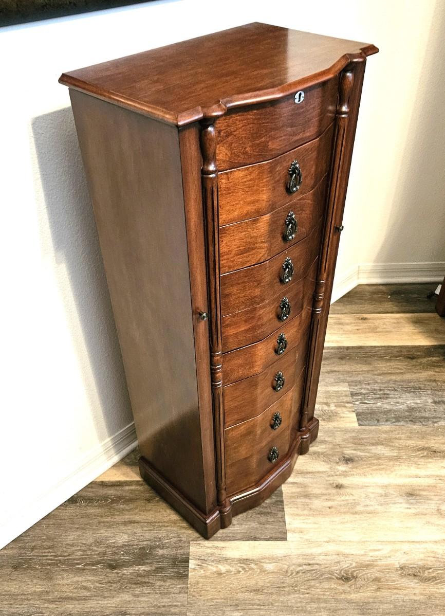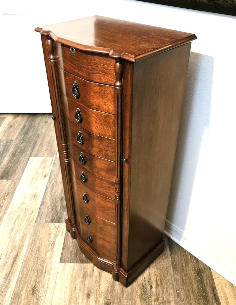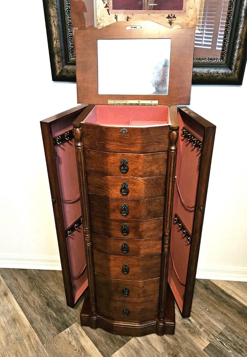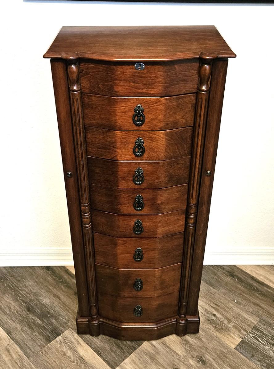 Brown Jewelry Armoire w/ Multiple Drawers and Side Compartments