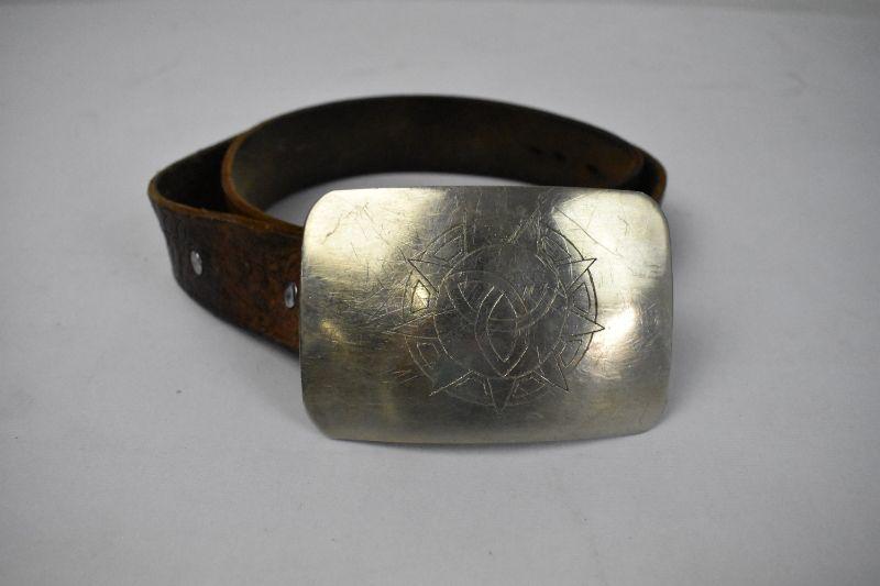 Brown Leather Belt & Silver Buckle