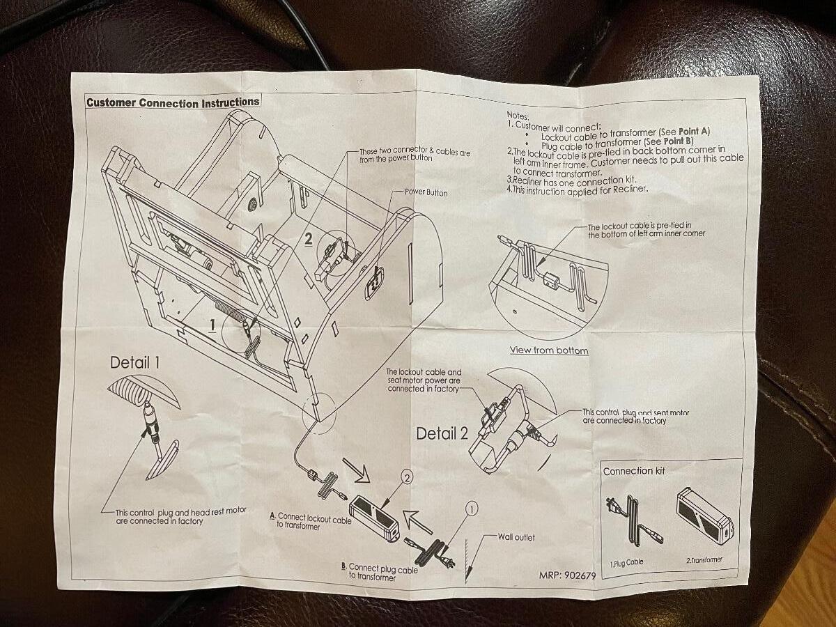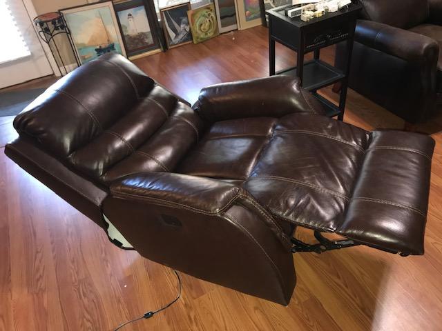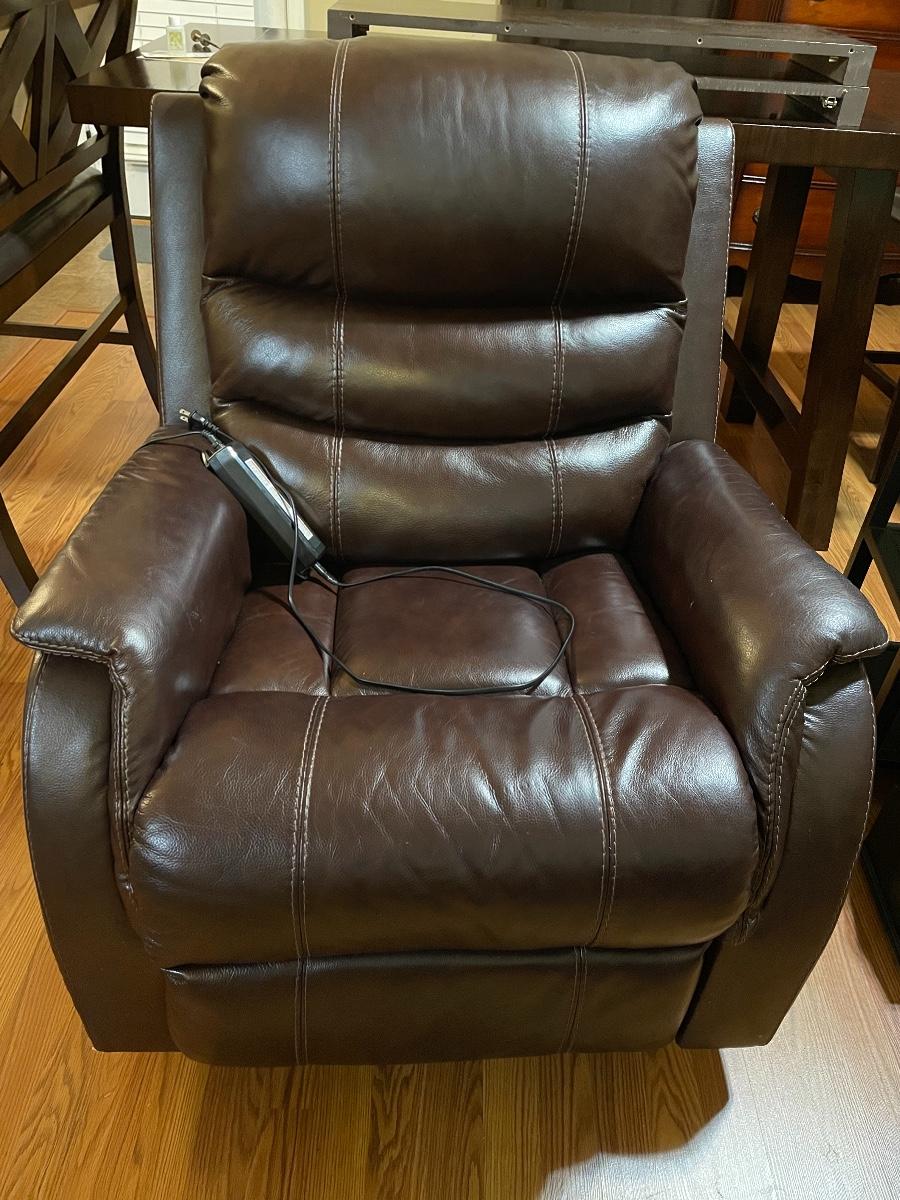 Brown Leather (electric) Recliner 35"W x 42"H. In working condition w/connection instructions.