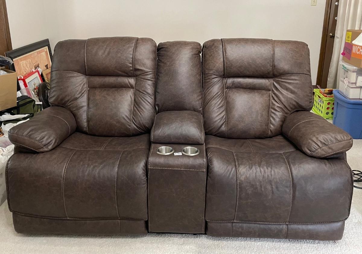 Center console allows for storage of your remotes and other items. Stainless steel cup holders.