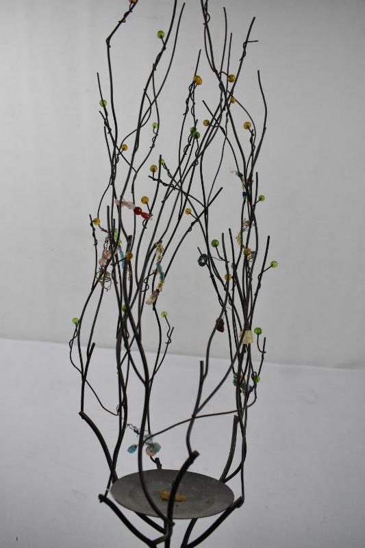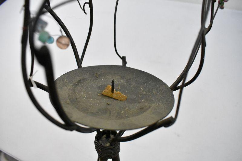 Brown Metal Candle Holder with Colorful Beads/Stones on "Branches"