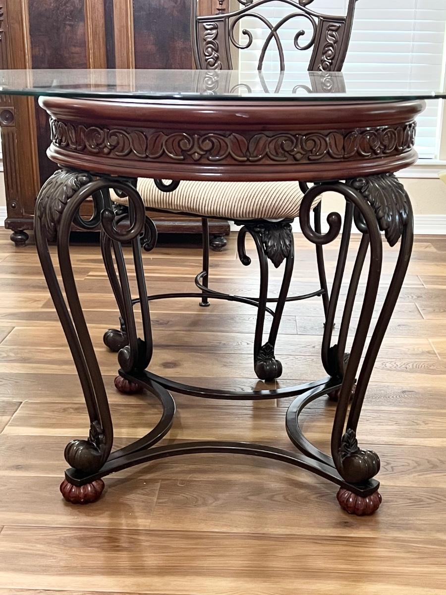 ASHLEY ~ Brown Metal / Mahogany Wood Table With Glass Top ~ *Read Details
